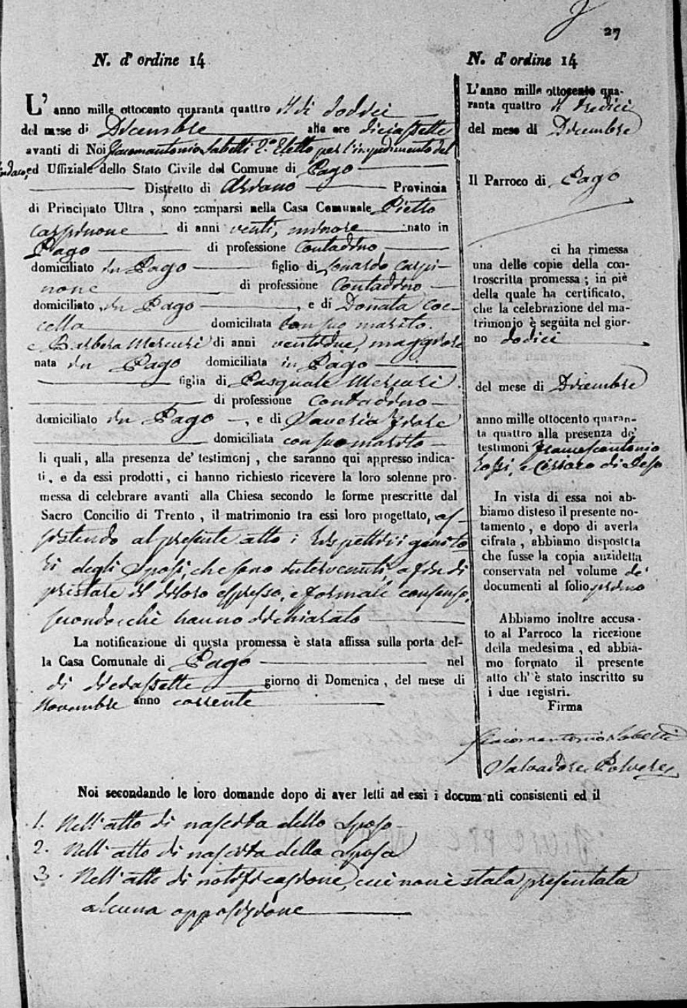 Maria Cocca were married on March 28, 1844 in Pago Veiano, Benevento, Campania, Italy. He died.
