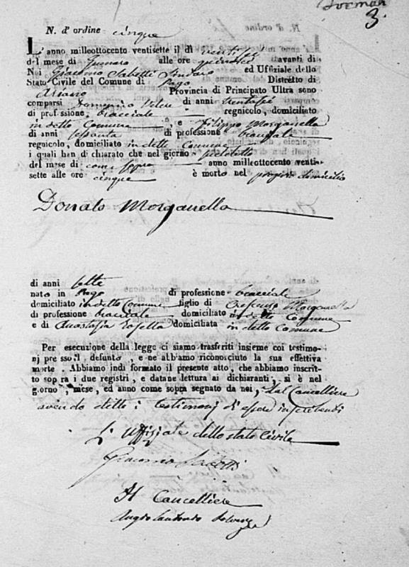 Donato Morganella was born on October 26, 1820 in Pago Veiano, Benevento, Campania, Italy. He died on January 26, 1827, at age 6, in Pago Veiano, Benevento, Campania, Italy.