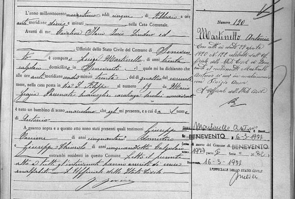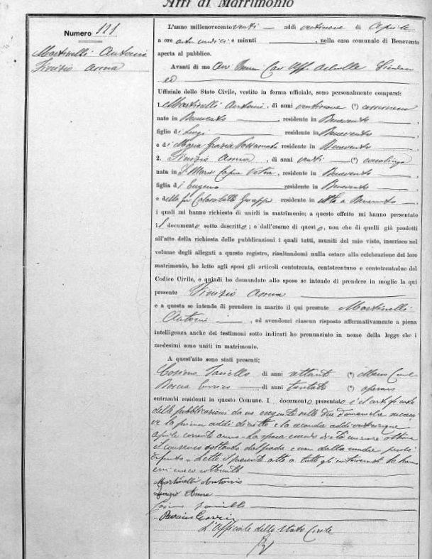 Antonio Martinelli were married on April 22, 1920 in Benevento, Benevento, Campania, Italy. She died.