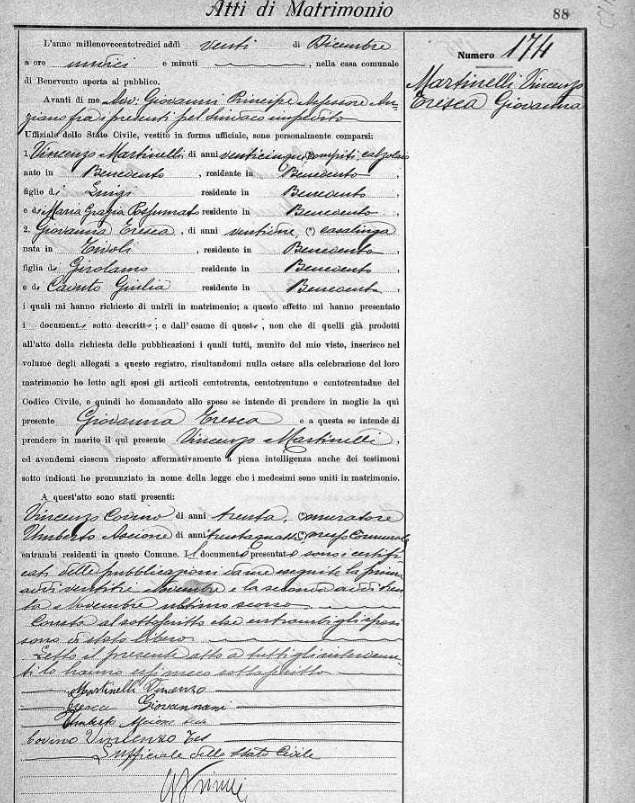 Grazia Maria Tresca were married on July 30, 1887 in Benevento, Benevento, Campania, Italy. He died.