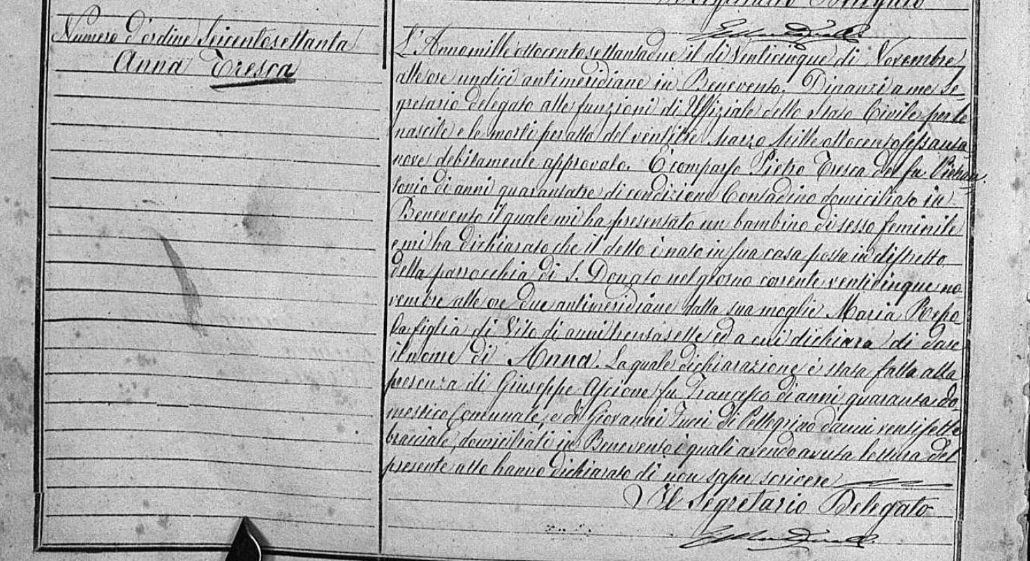Anna Tresca was born on November 25, 1872 in Benevento, Benevento, Campania, Italy. She died on June 22, 1873, at age 0, in Benevento, Benevento, Campania, Italy.