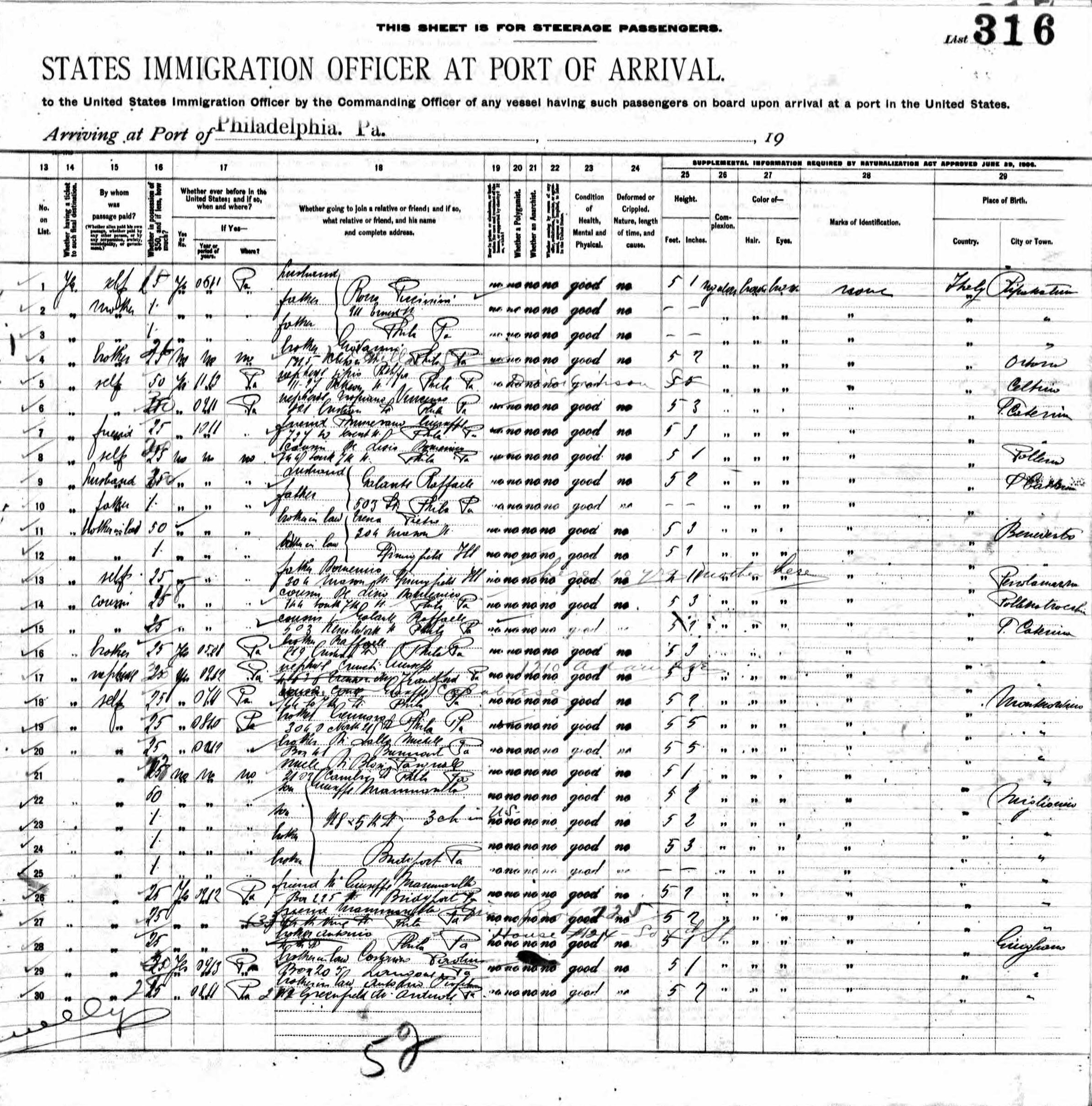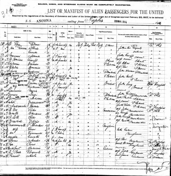 Martinelli Family 1914 Ship Arrival Manifest, Line 11-12