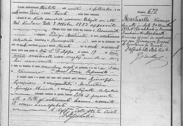 | Son | Vincenzo Martinelli Born: September 20, 1888, Died: 1931 |