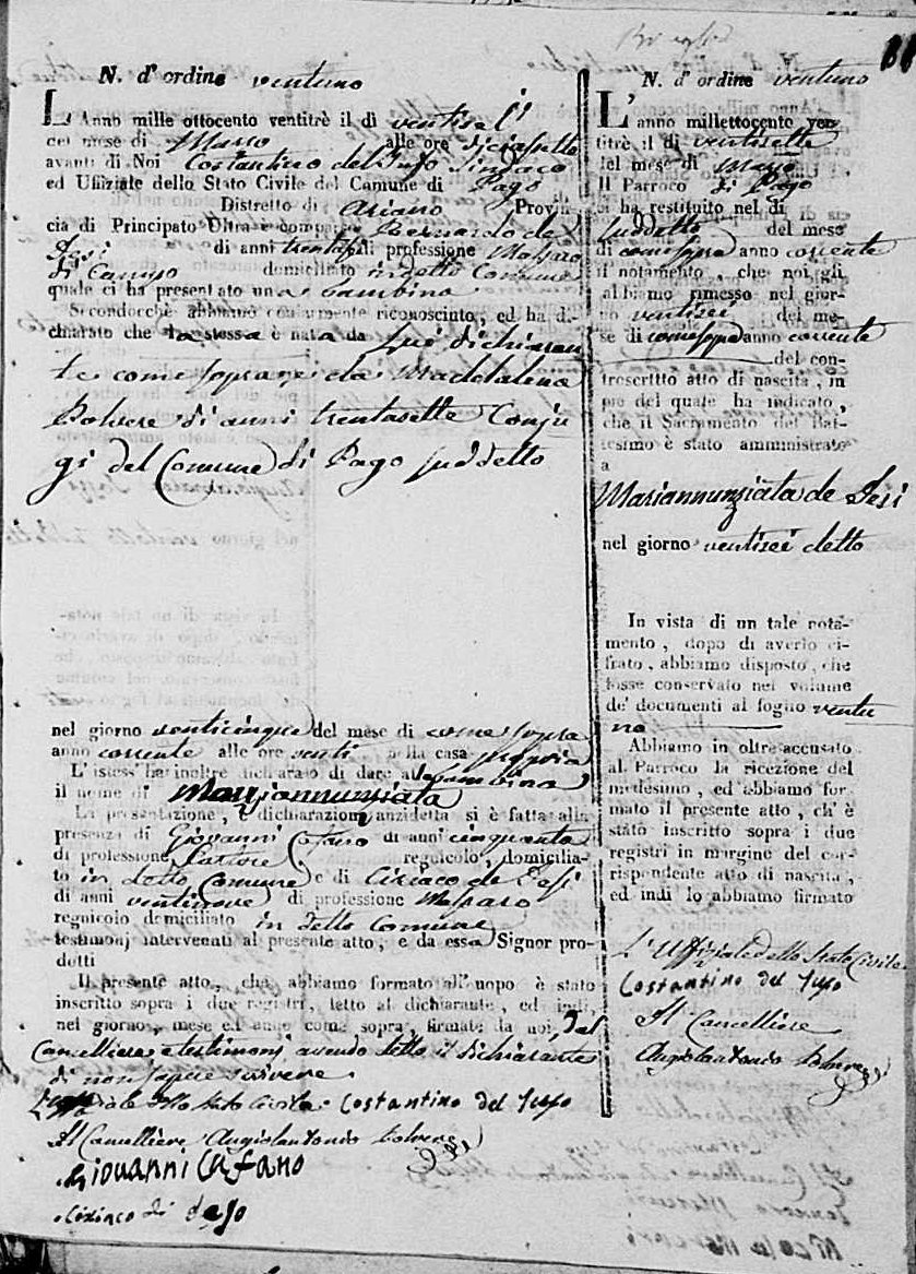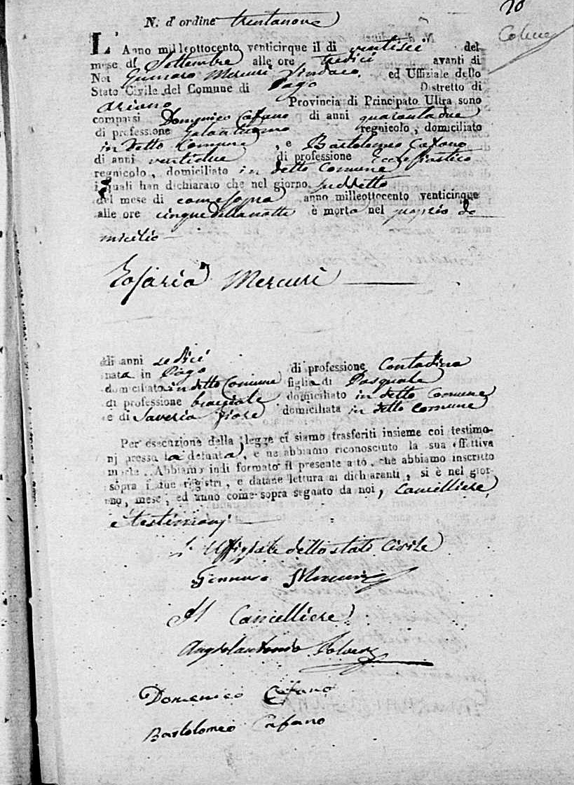 Maria Concetta Mercuri were married on November 10, 1825 in Pago Veiano, Benevento, Campania, Italy. He died.