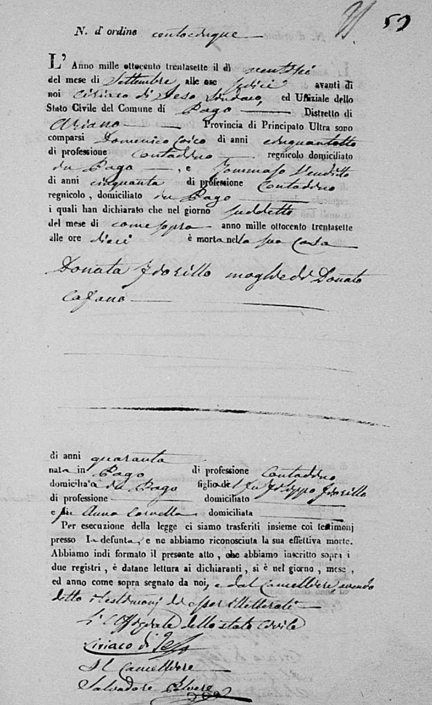 Donato Cafano was born in 1793 in Pago Veiano, Benevento, Campania, Italy. He and