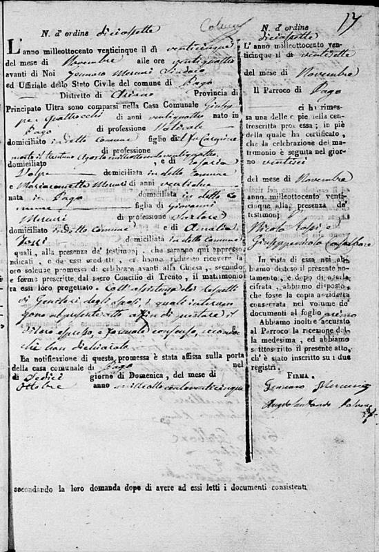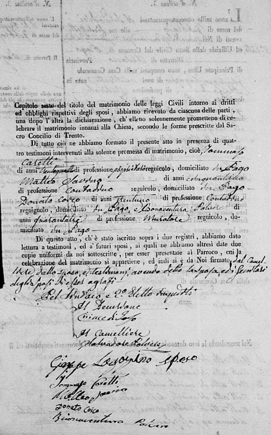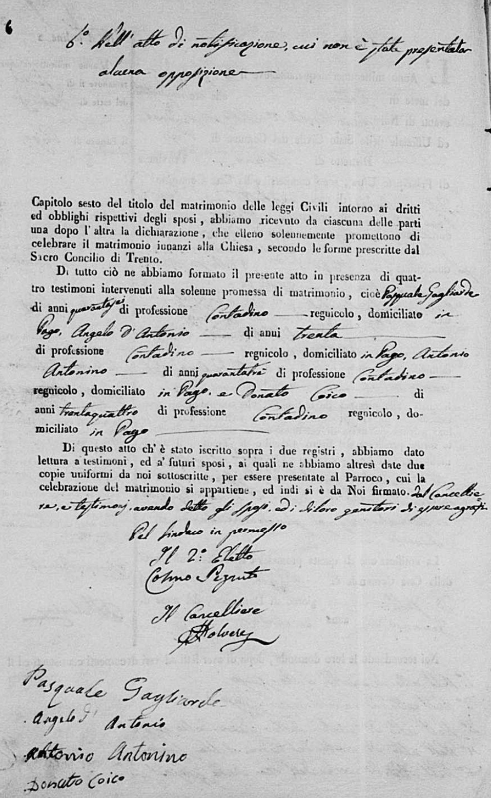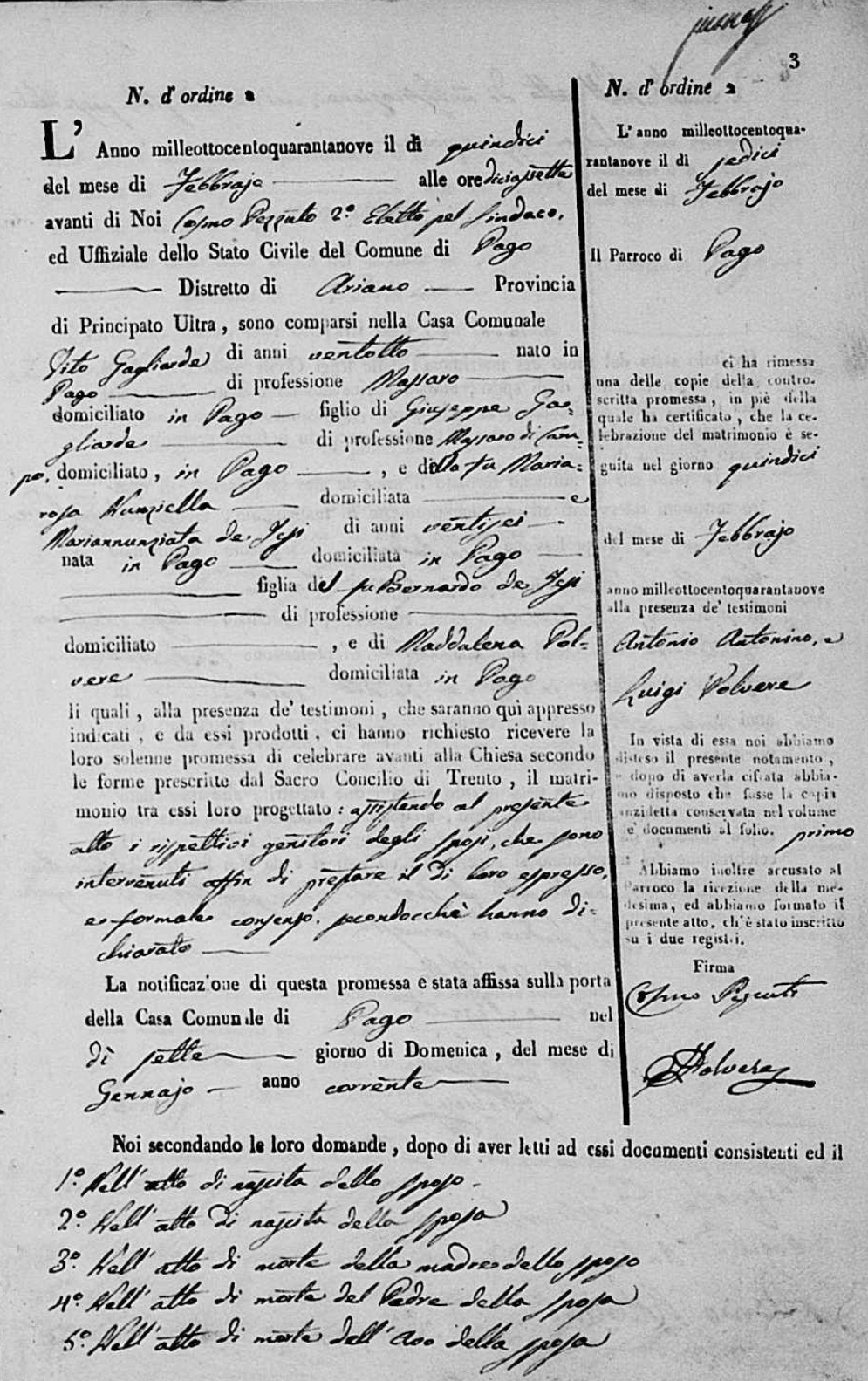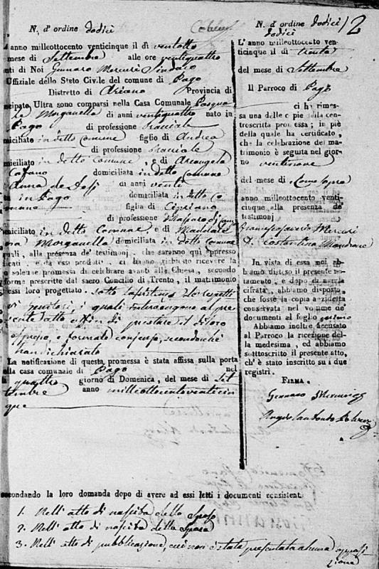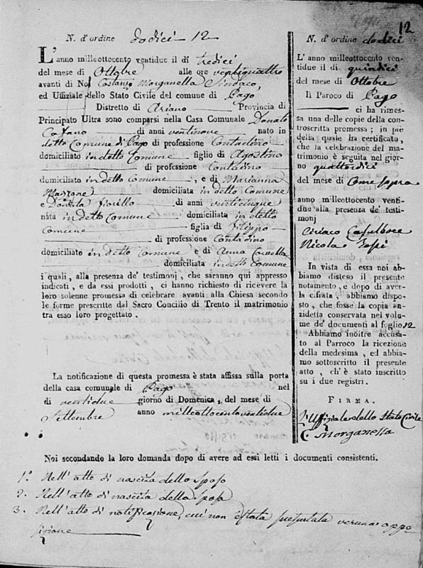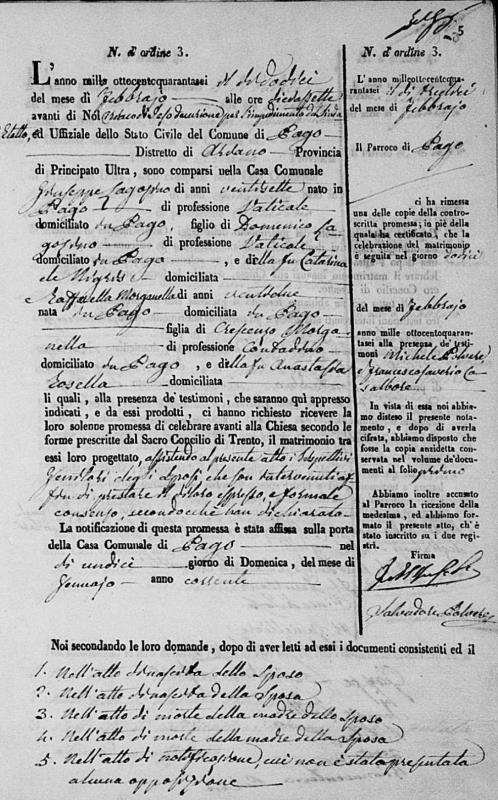 Donata Fiorillo were married on October 14, 1822 in Pago Veiano, Benevento, Campania, Italy. He and