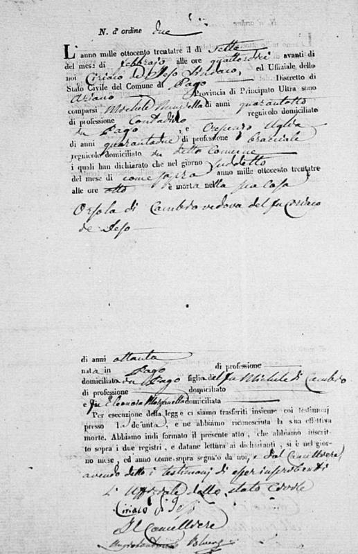 Orsola Di Cambio were married. He died on November 26, 1794 in Pago Veiano, Benevento, Campania, Italy.