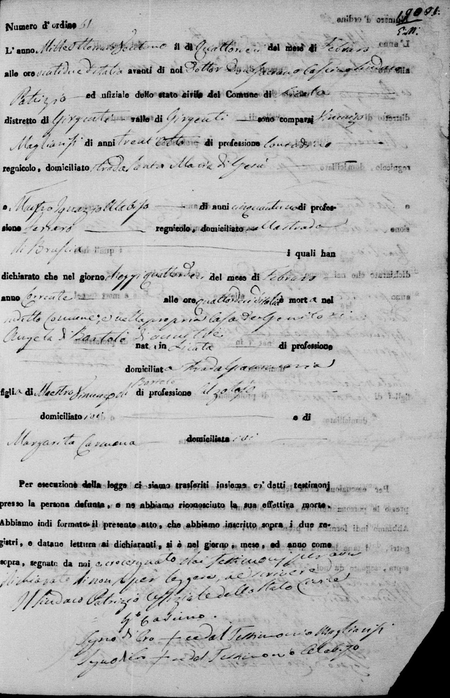 Vincenza Corvaia Calafato were married on January 3, 1858 in Licata, Agrigento, Sicily, Italy. He died.