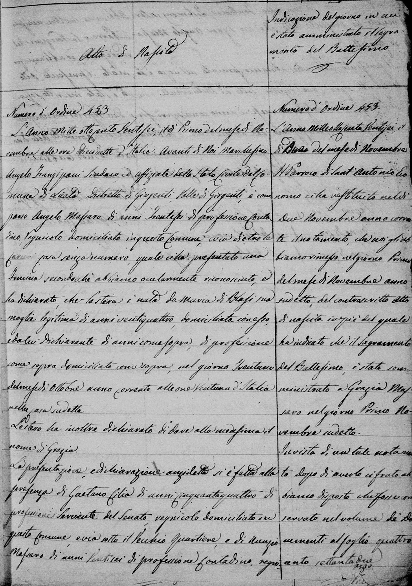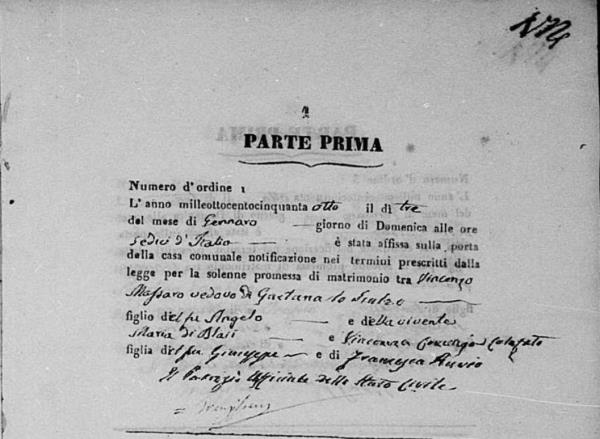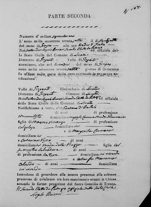 Maria Scauso were married on November 19, 1843 in Licata, Agrigento, Sicily, Italy. He and