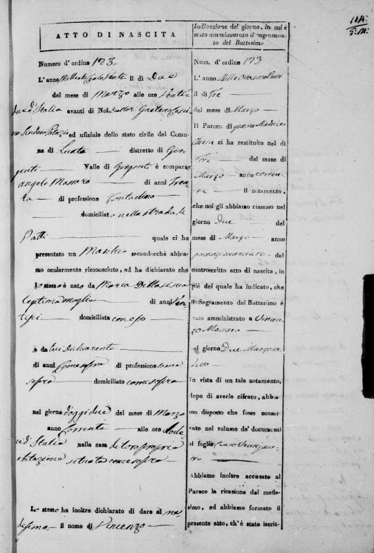 | Son | Vincenzo Massaro Born: March 2, 1820 |