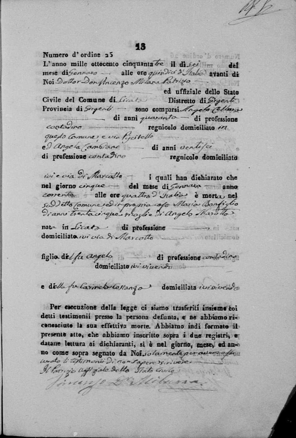 Maria Rosa Santamaria were married on September 1, 1856 in Licata, Agrigento, Sicily, Italy. He died.