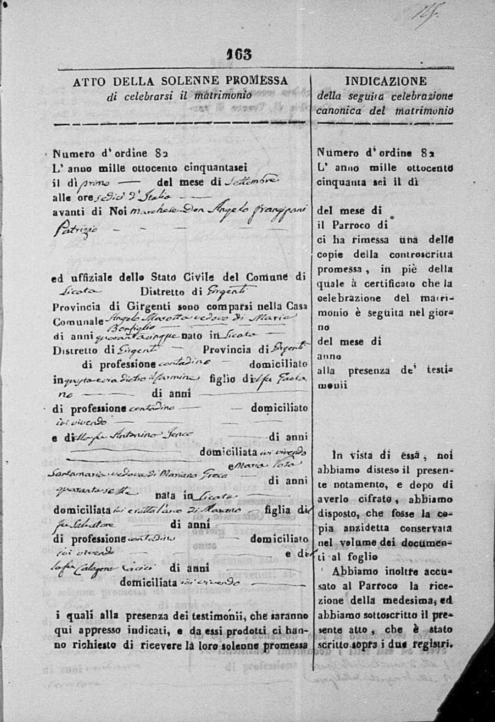 Angelo Marotta were married on September 1, 1856 in Licata, Agrigento, Sicily, Italy. She died.