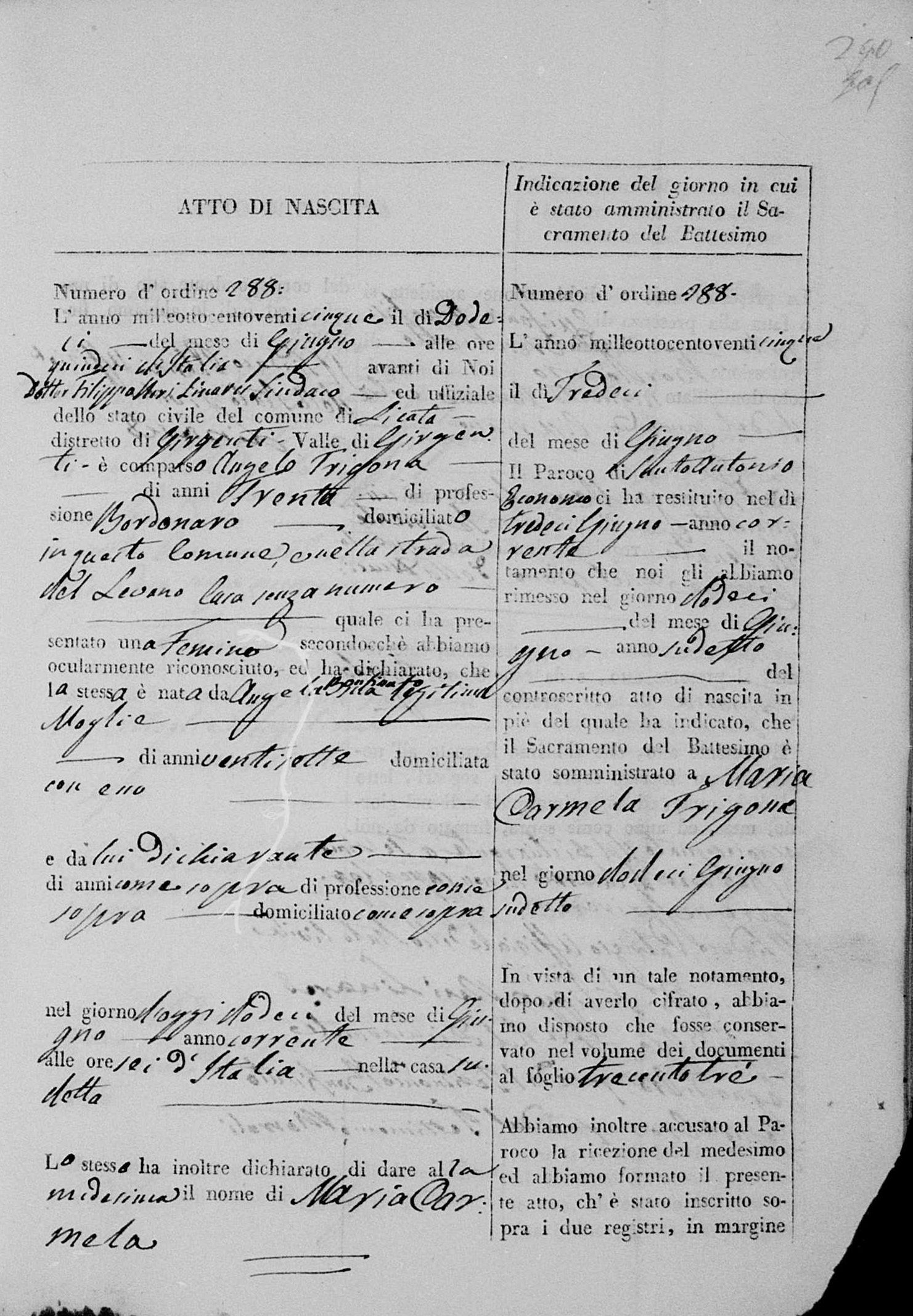 Maria Bonfiglio was born in 1818 in Licata, Agrigento, Sicily, Italy. She and