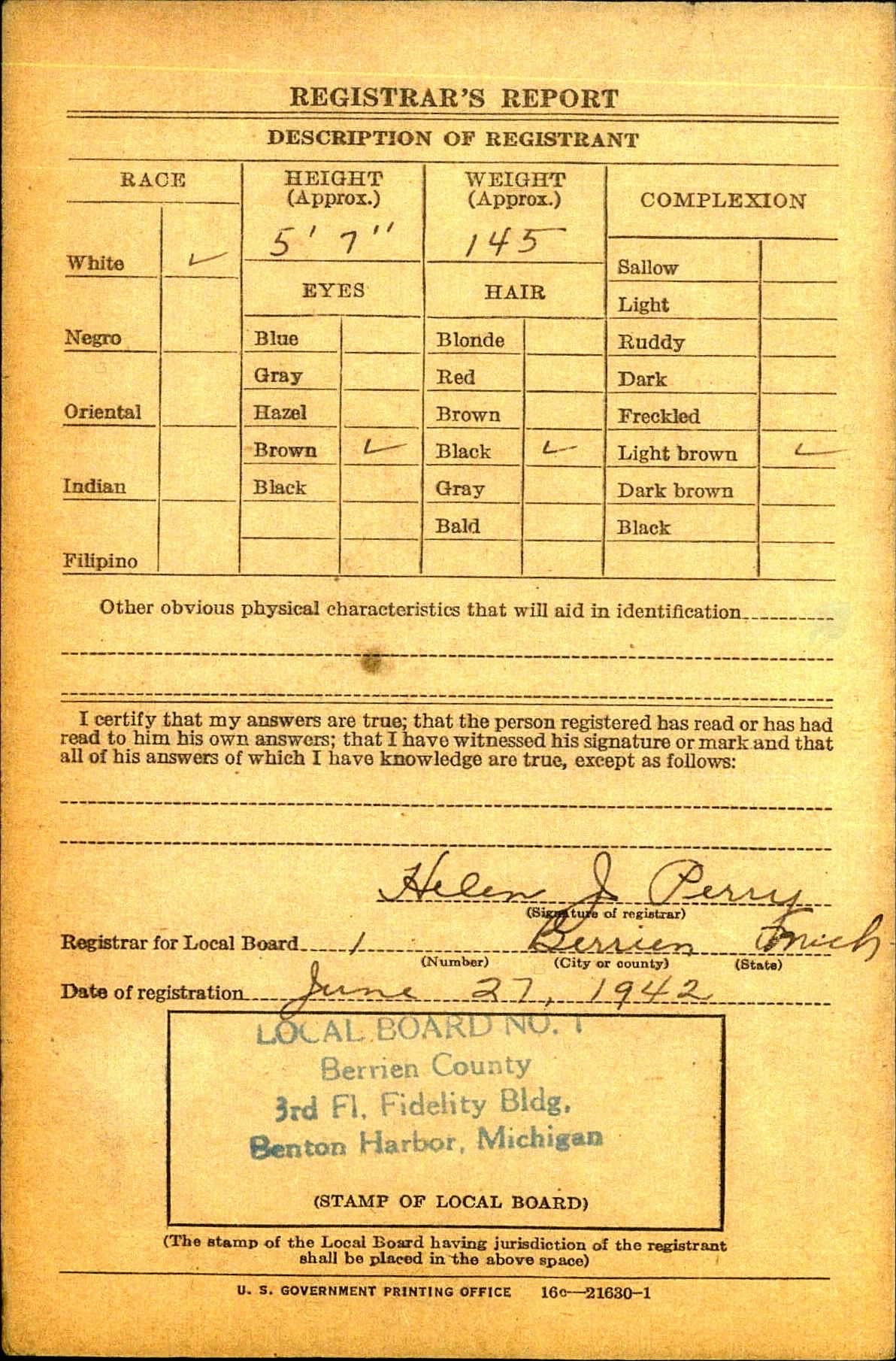 1942 World War II Registration Page 1