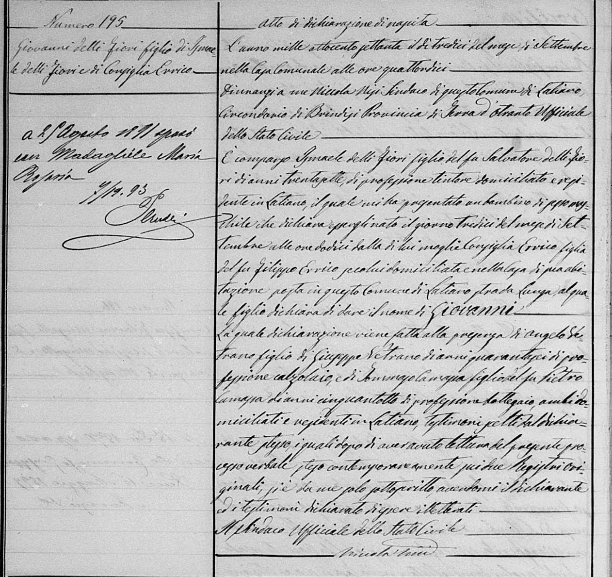 Giovanni Delli Fiori was born on September 13, 1870 in Latiano, Brindisi, Puglia, Italy. He and