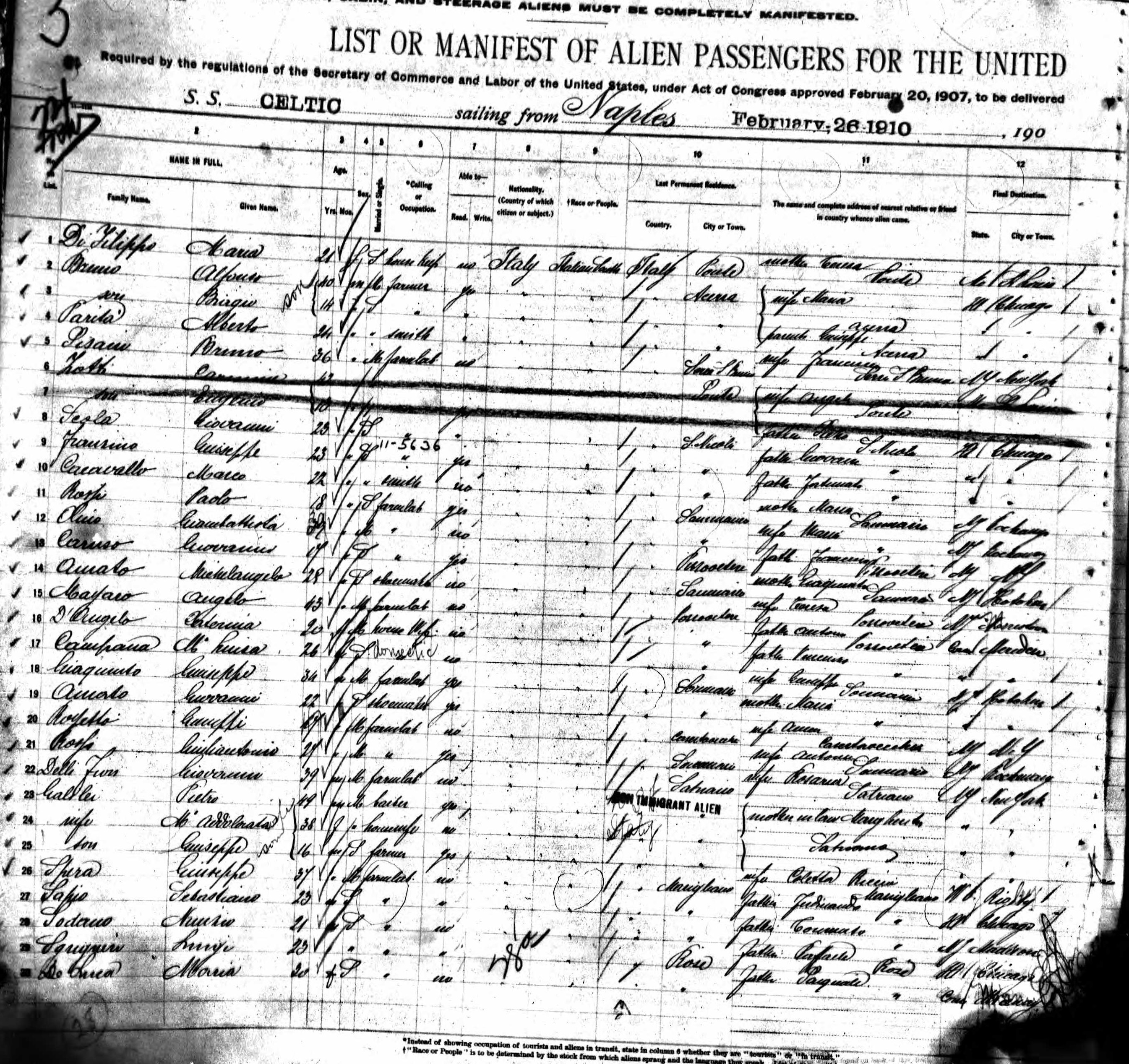 Giovanni Delli Fiori 1910 Ship Departure Manifest, Line 22