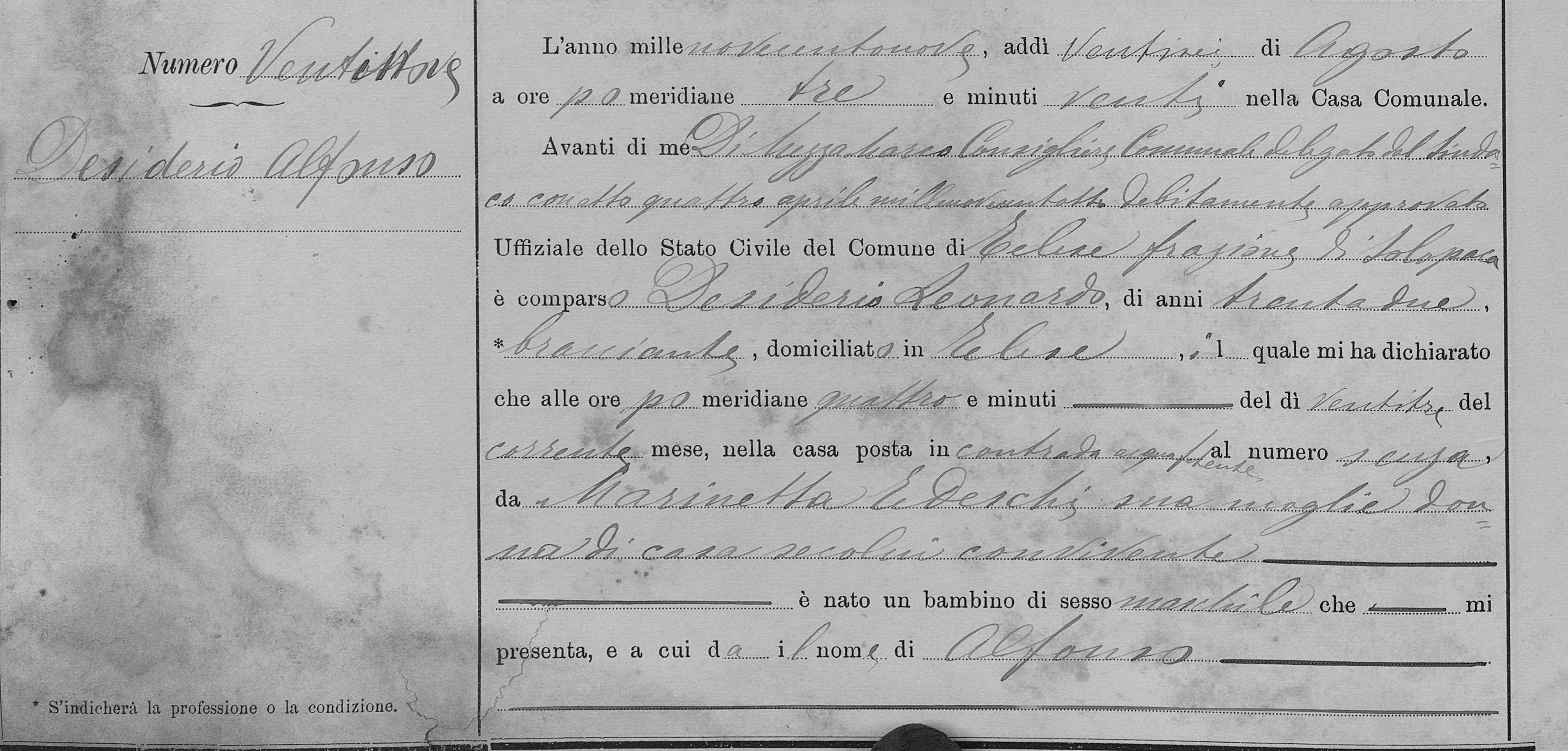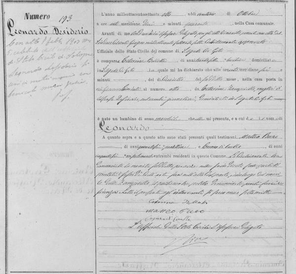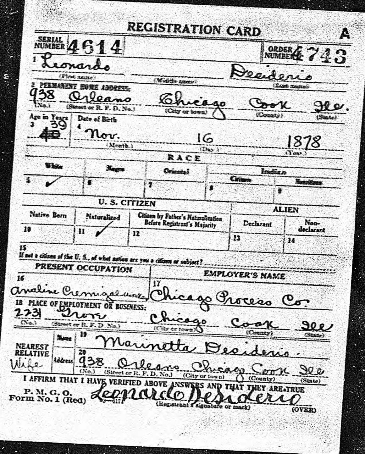 Leonardo Desiderio was born on October 18, 1878 in Sant'Agata de'Goti, Benevento, Campania, Italy. He and