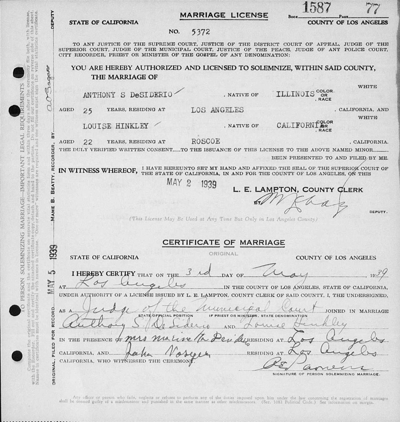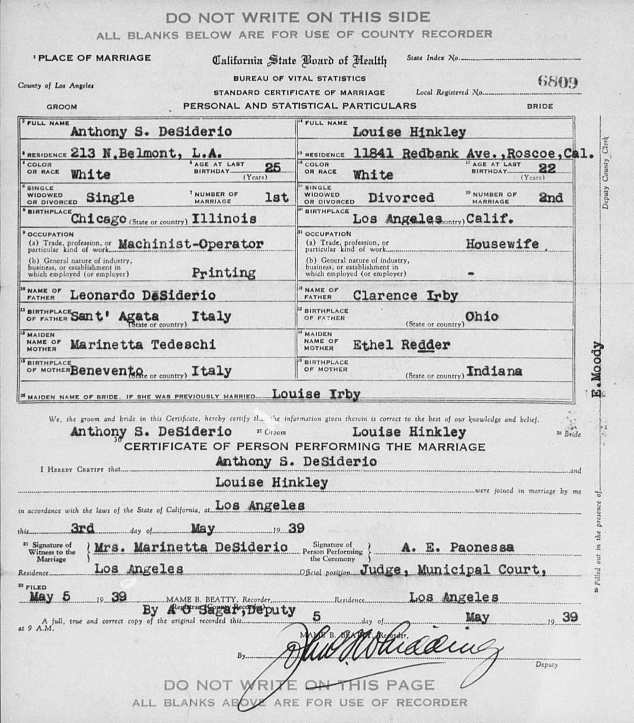 Louise Irby were married on May 3, 1939 in Los Angeles, California, USA. He died.
