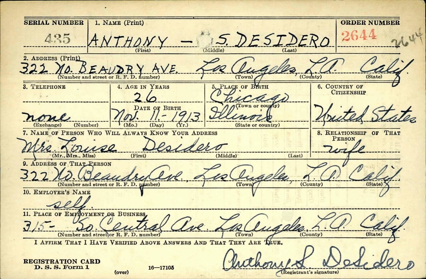 Anthony S. Desiderio was born in 1913 in Chicago, Cook, Illinois, USA. He and