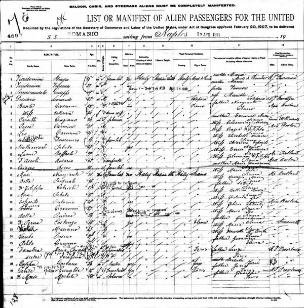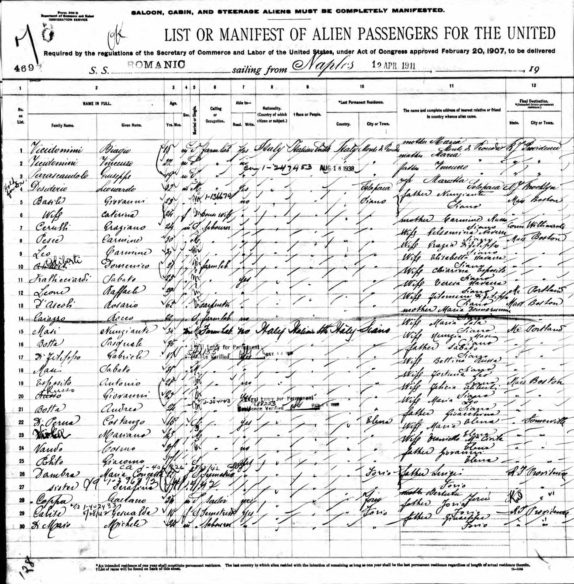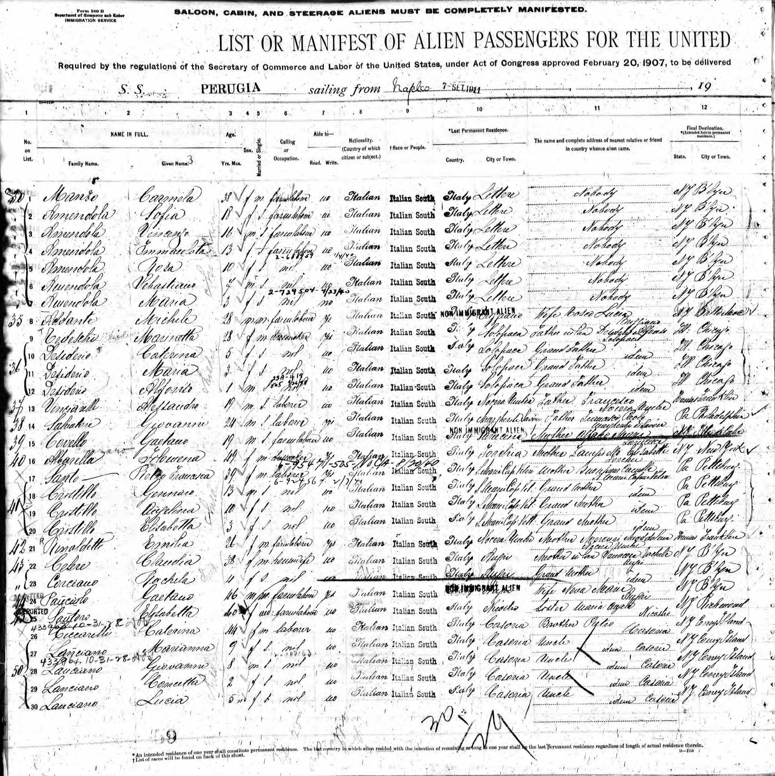 Desiderio Family 1911 Ship Departure Manifest, Lines 9-12