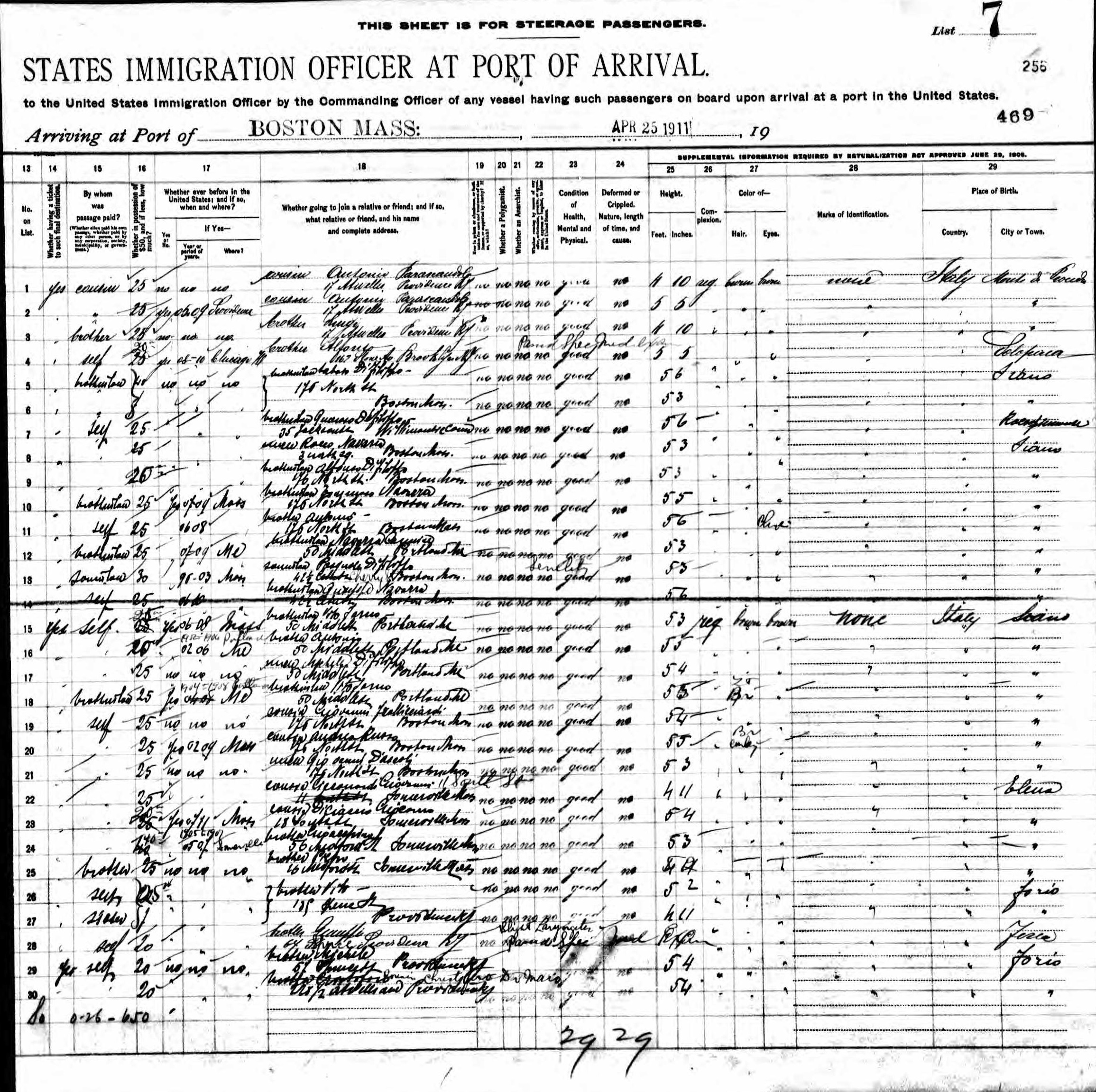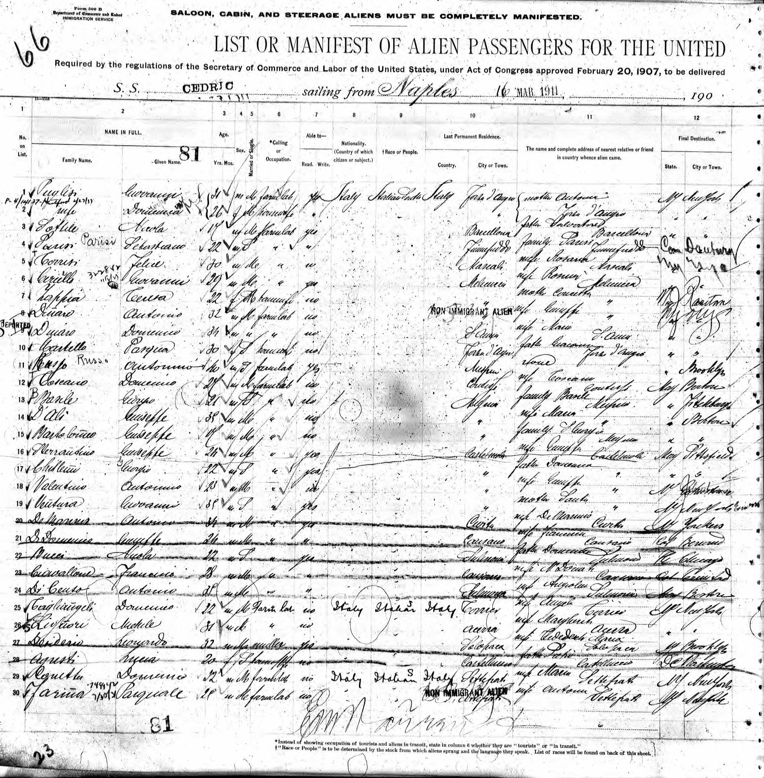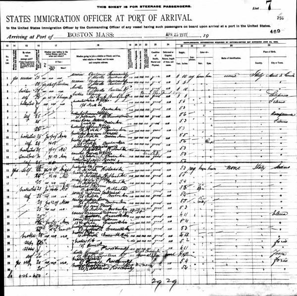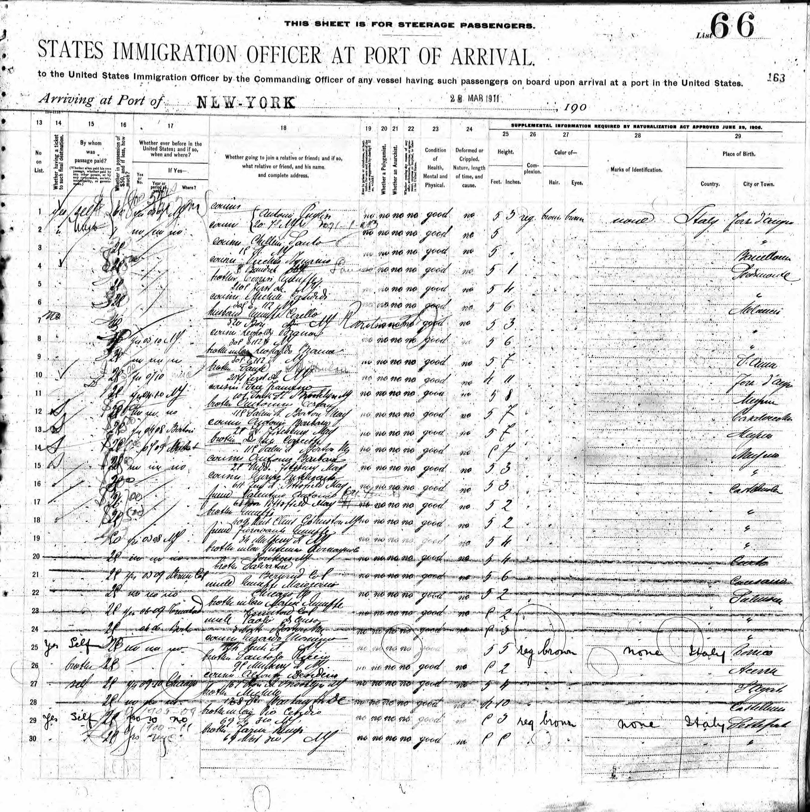 Desiderio Family 1911 Ship Departure Manifest, Lines 9-12