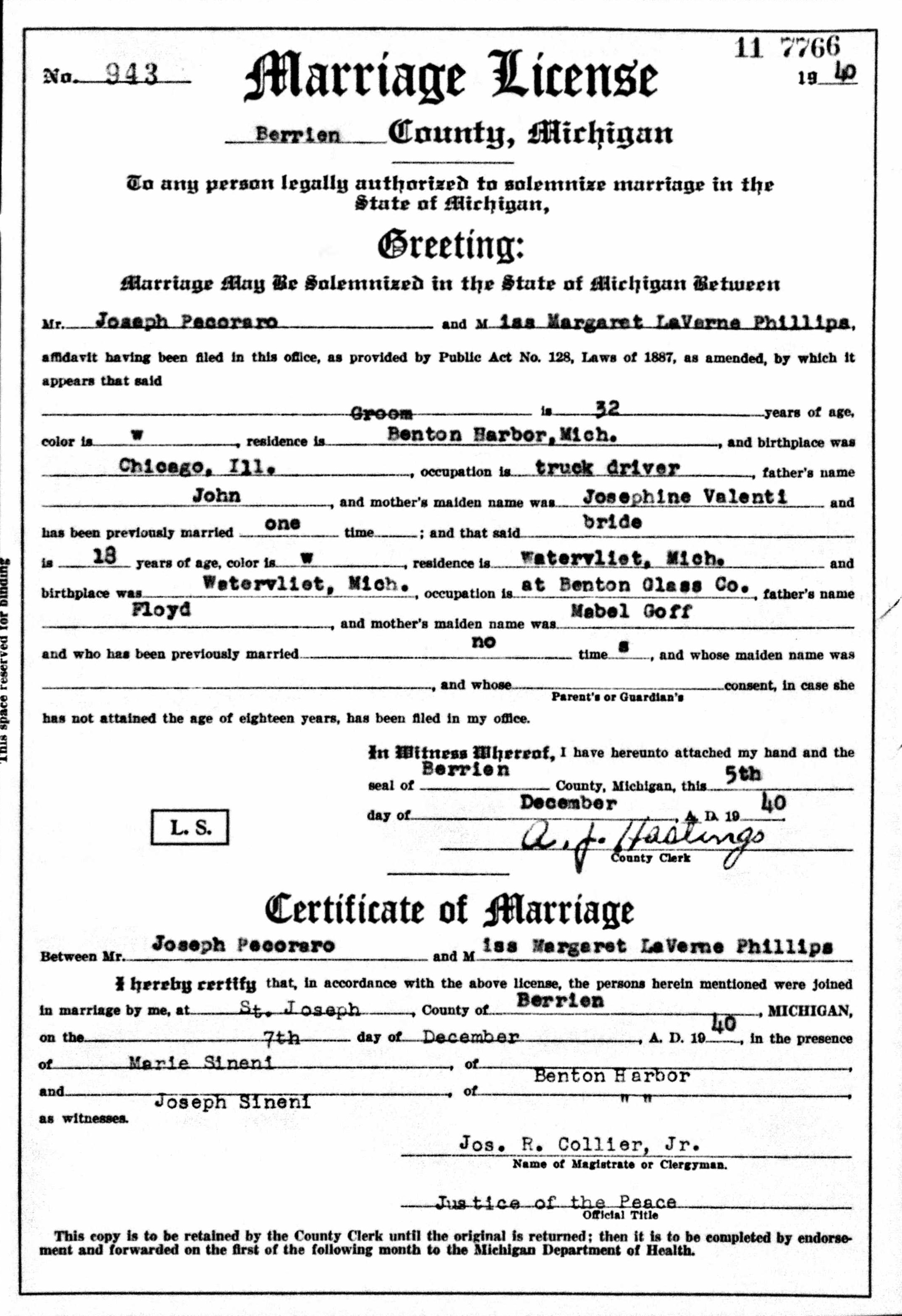 Margaret LaVerne Phillips were married on December 7, 1940 in St. Joseph, Berrien, Michigan, USA. He died.
