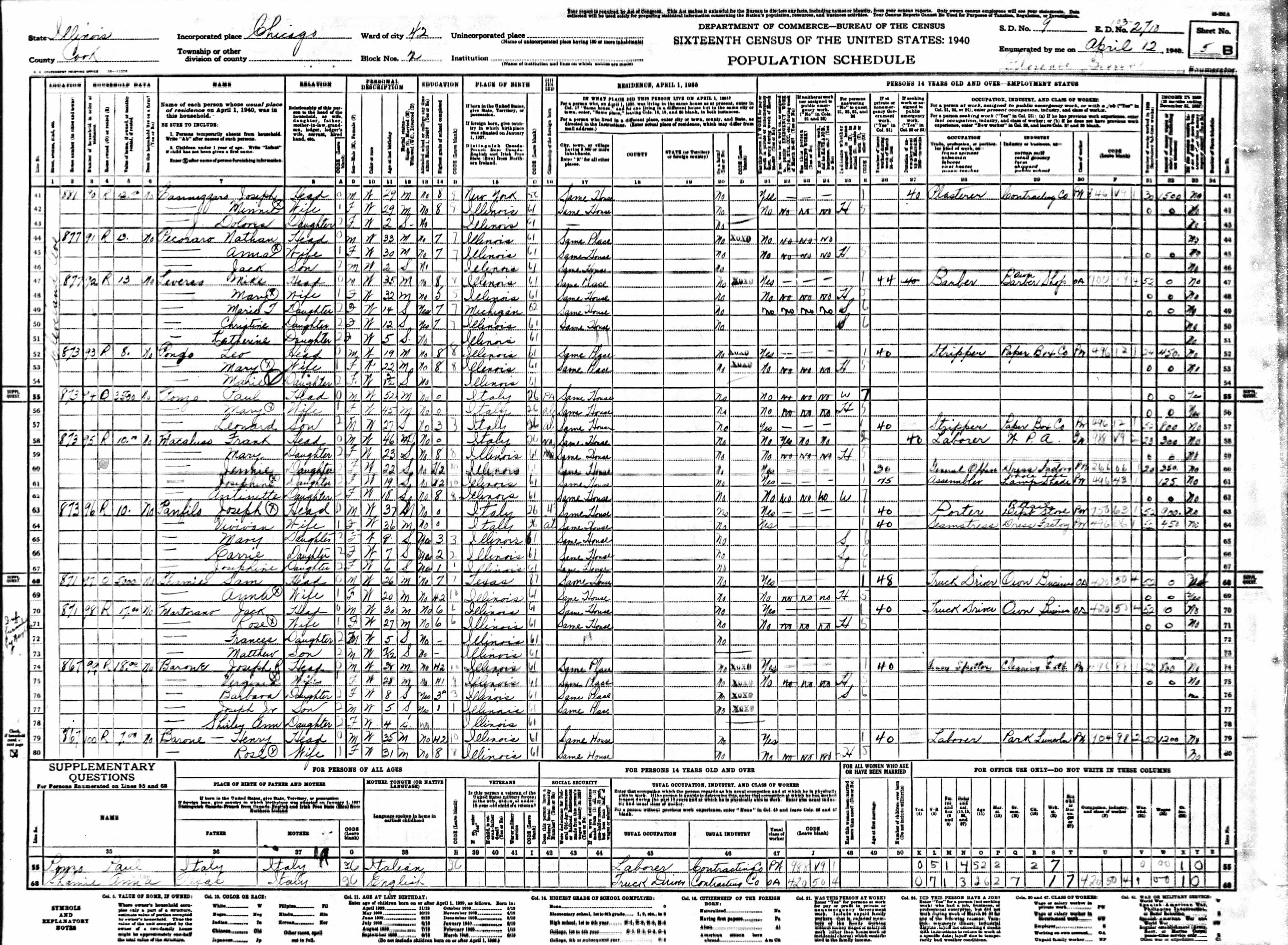 Pecoraro Family 1940 Federal Census Illinois, Lines 44-46