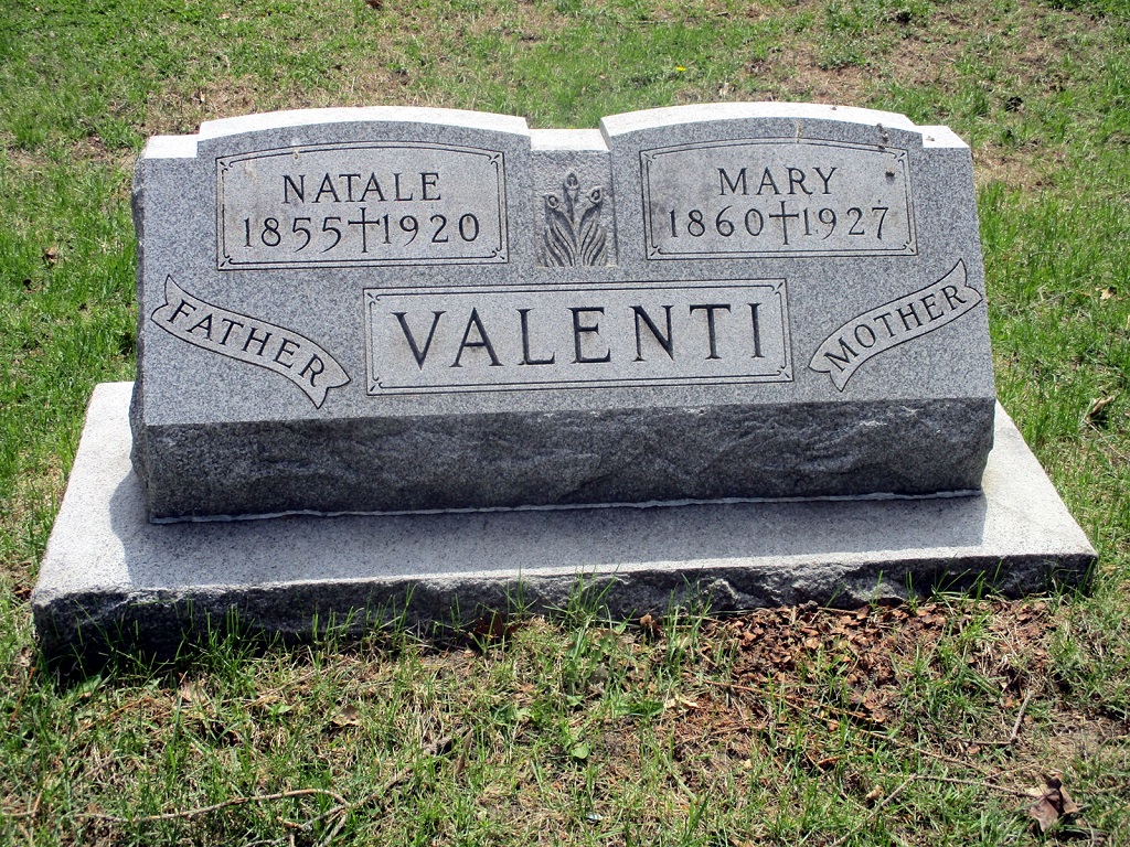 Natale Valenti were married in 1880. She died in 1927, at age ~67, in Benton Harbor, Berrien, Michigan, USA. She was buried in Calvary Cemetery, Benton Harbor, Michigan.