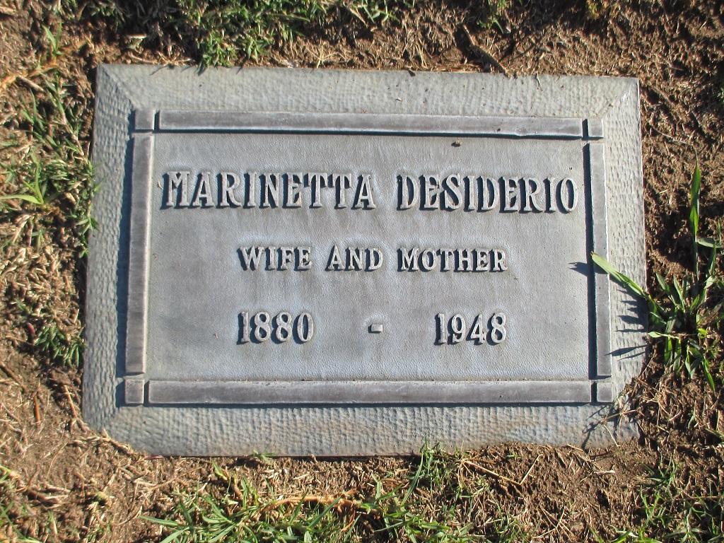 Leonardo Desiderio were married on November 27, 1904 in San Lupo, Benevento, Campania, Italy. She died on July 25, 1948, at age 65, in Los Angeles, California, USA. She was buried in Forest Lawn Memorial Park, Glendale, California.