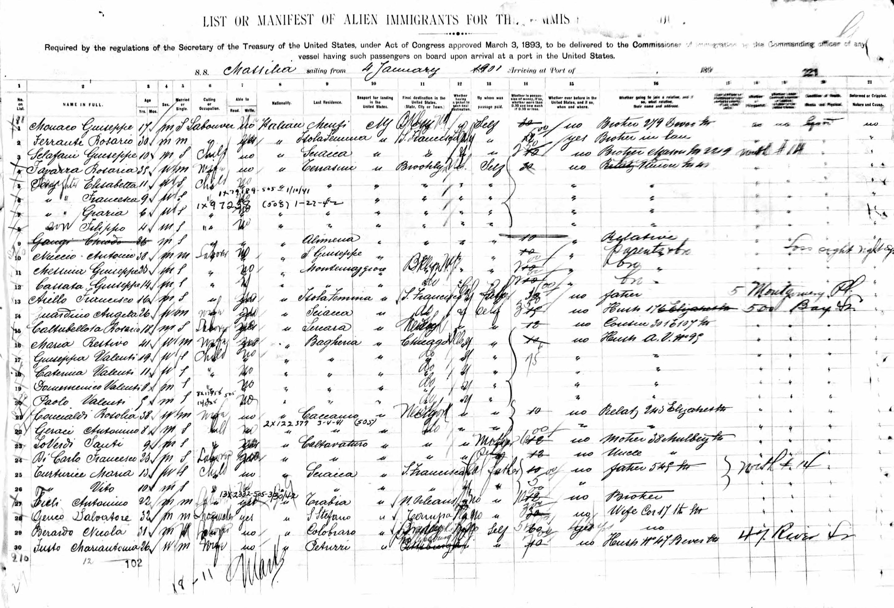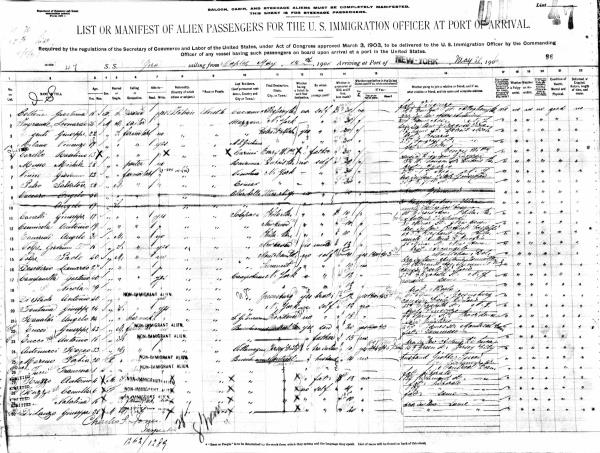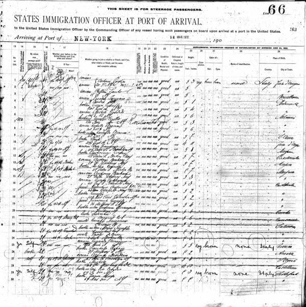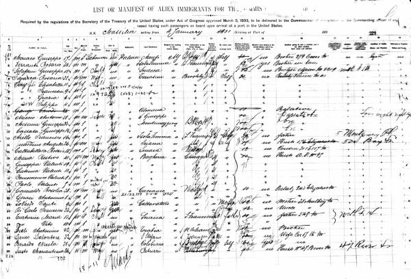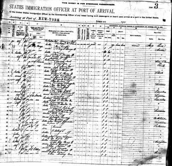 Valenti Family 1901 Ship Arrival Manifest, Lines 16-20