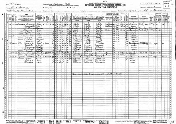 Desiderio Family 1930 Federal Census Illinois, Lines 1-10