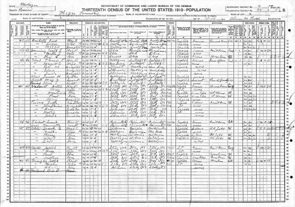 Valenti Family 1910 Federal Census Michigan, Lines 65-74
