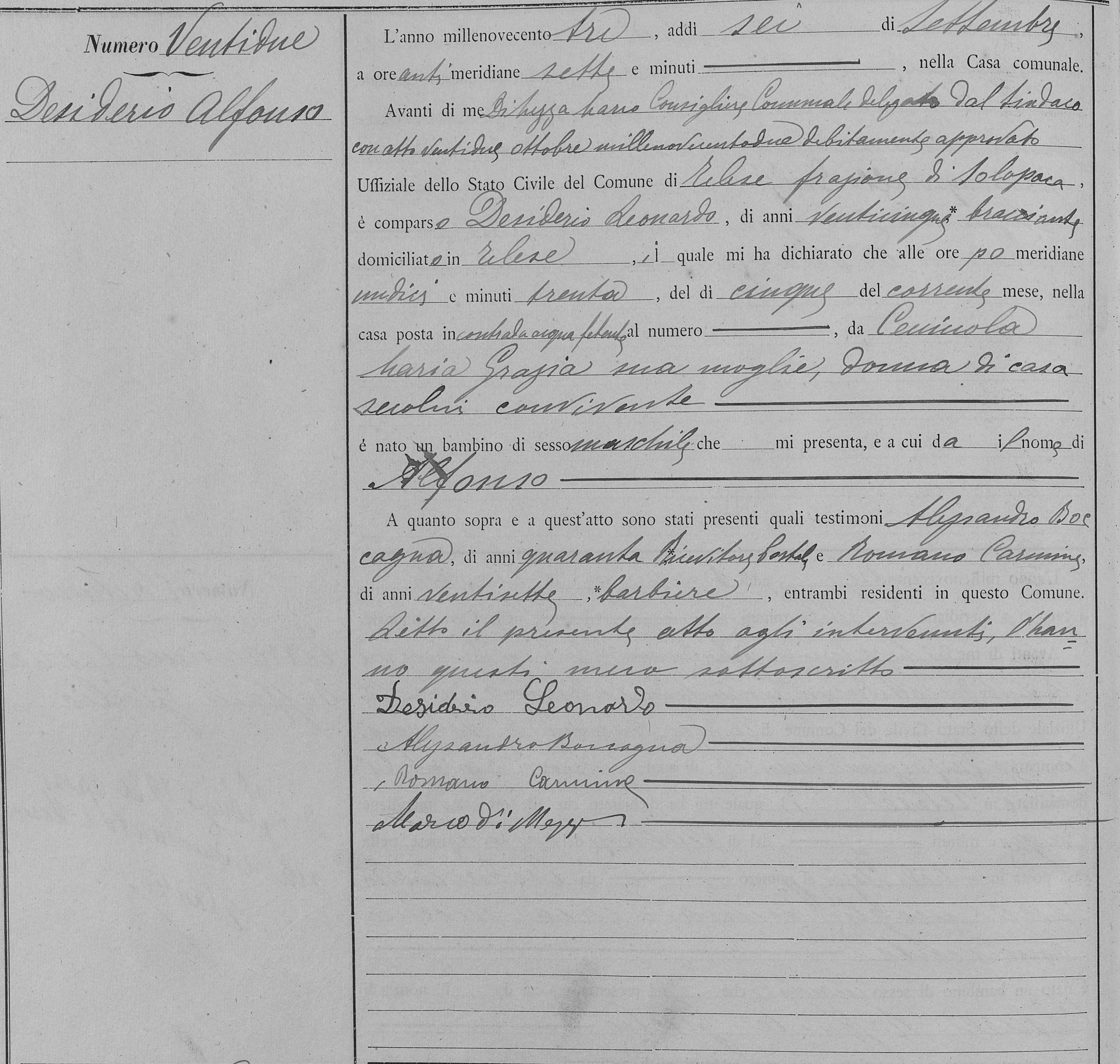 Alfonso Desiderio was born on September 5, 1903 in Telese, Benevento, Campania, Italy. He died.