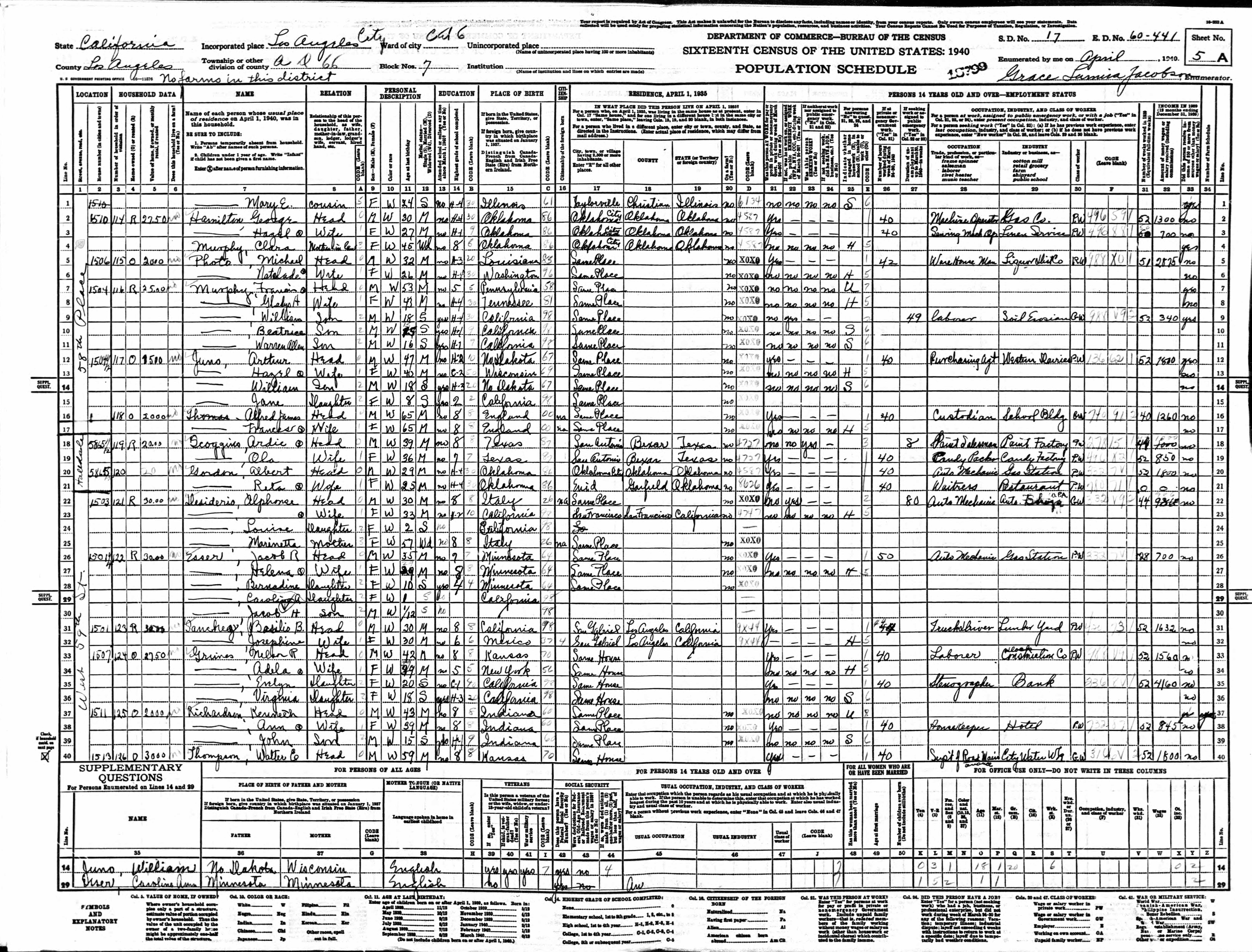 Desiderio Family 1940 Federal Census California, Lines 22-25