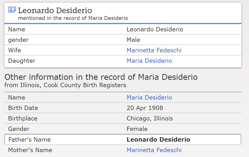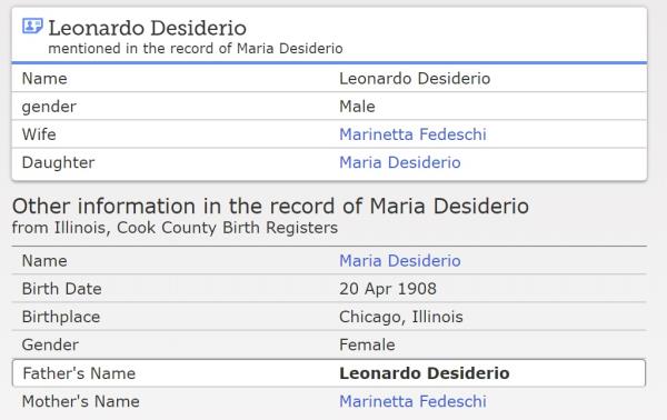 Maria Desiderio was born on April 20, 1908 in Chicago, Cook, Illinois, USA. She died.