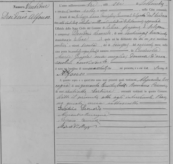 Alfonso Desiderio was born in 1850 in Italy. He and