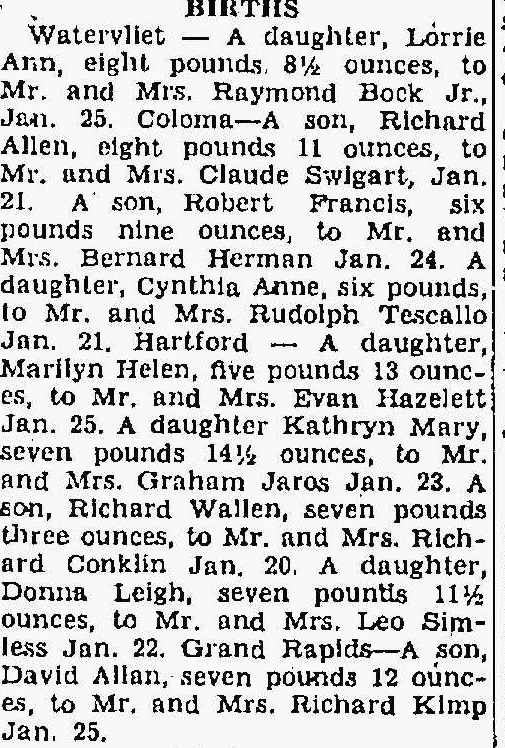1959 Birth Announcement Article