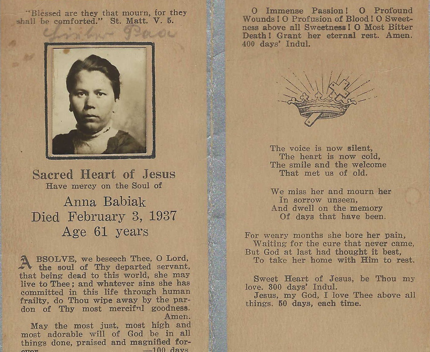 1937 Funeral Prayer Card