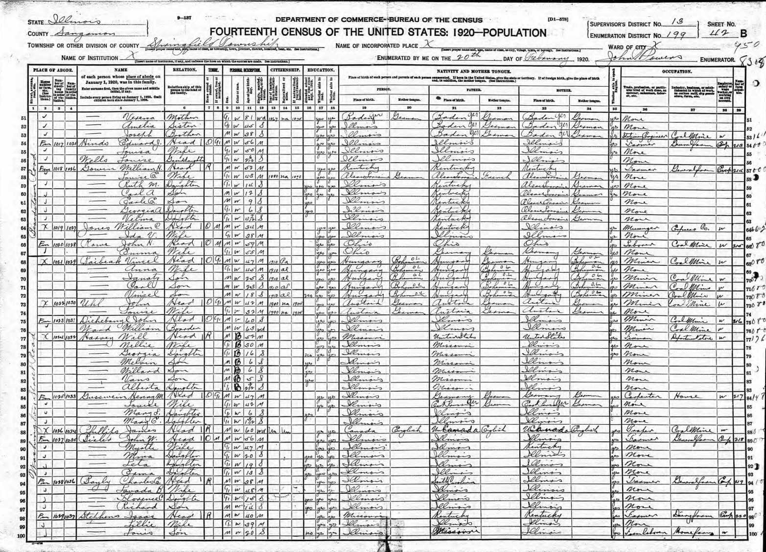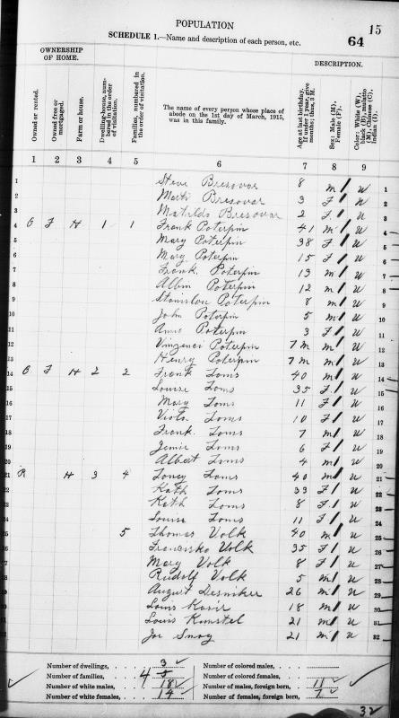 Volk Family 1920 Federal Census Illinois, Lines 96-99