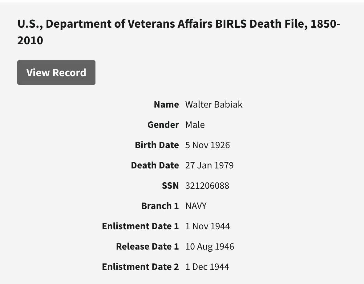 Walter Babiak Gravestone