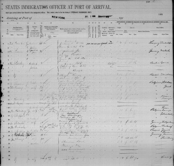 Volk Family 1914 Ship Arrival Manifest, Lines 6-8