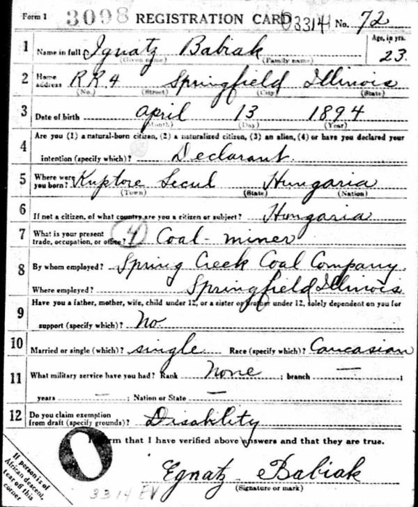 1918 World War I Registration Page 1