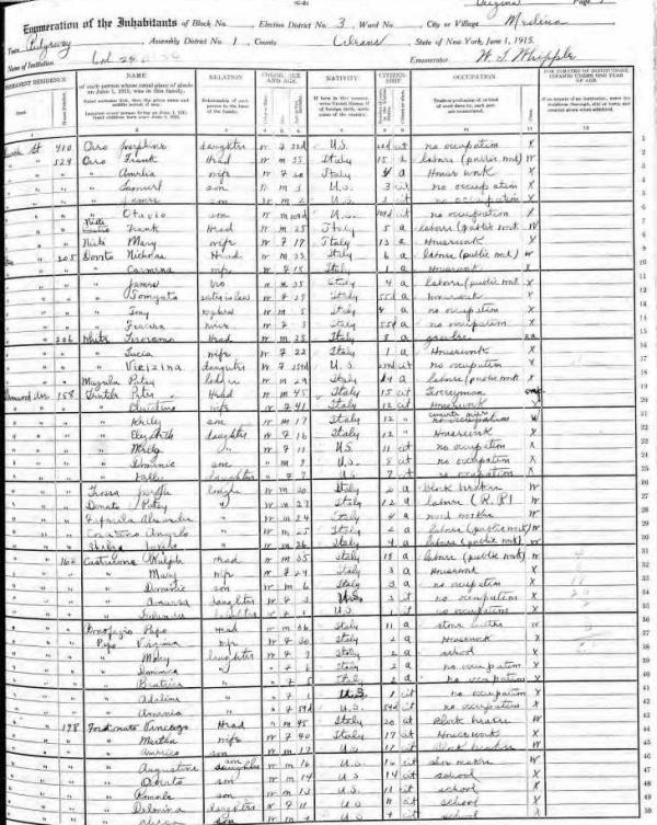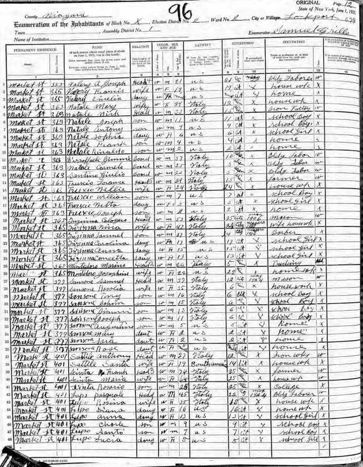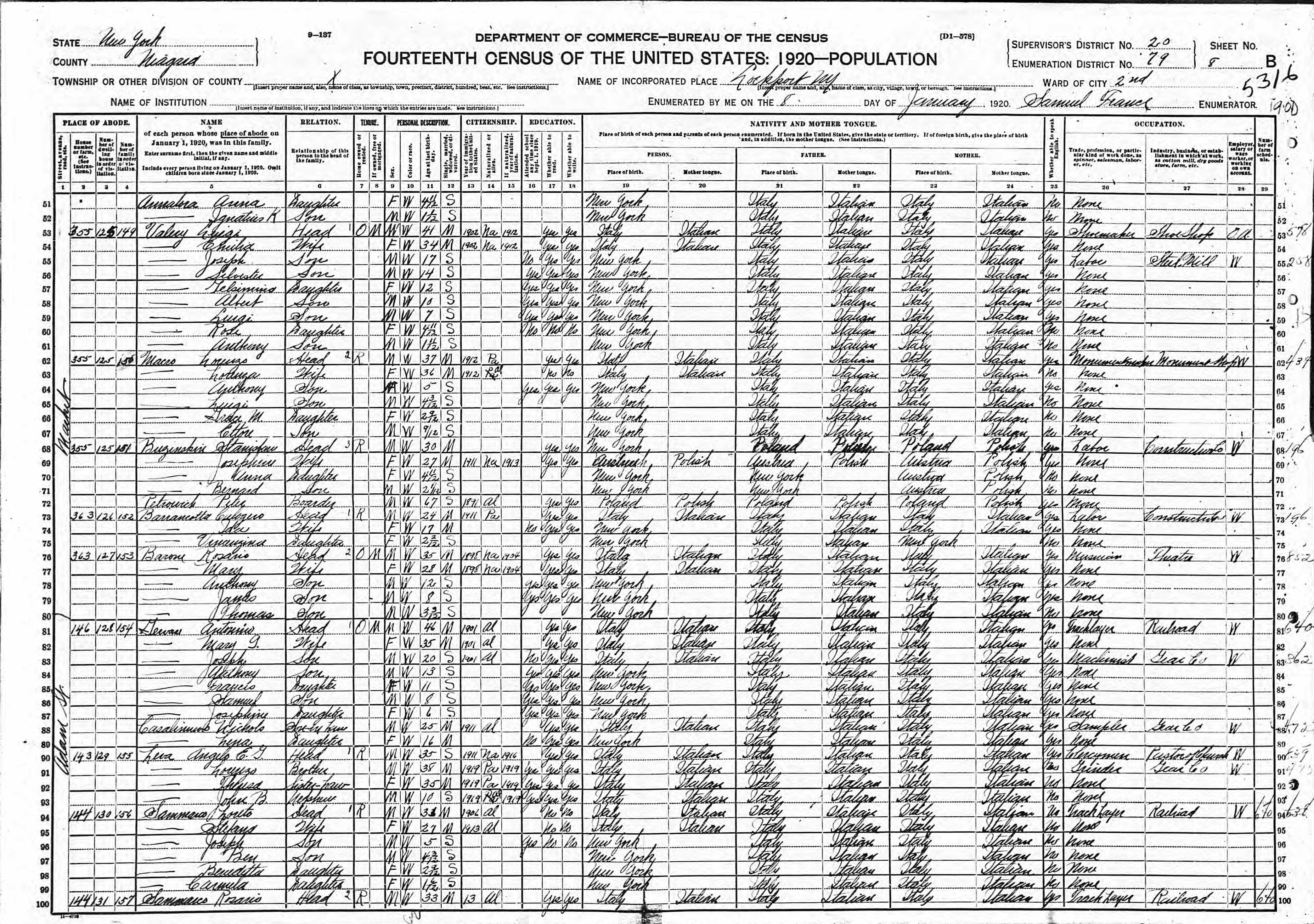 Valeri Family 1920 Federal Census New York, Lines 53-61