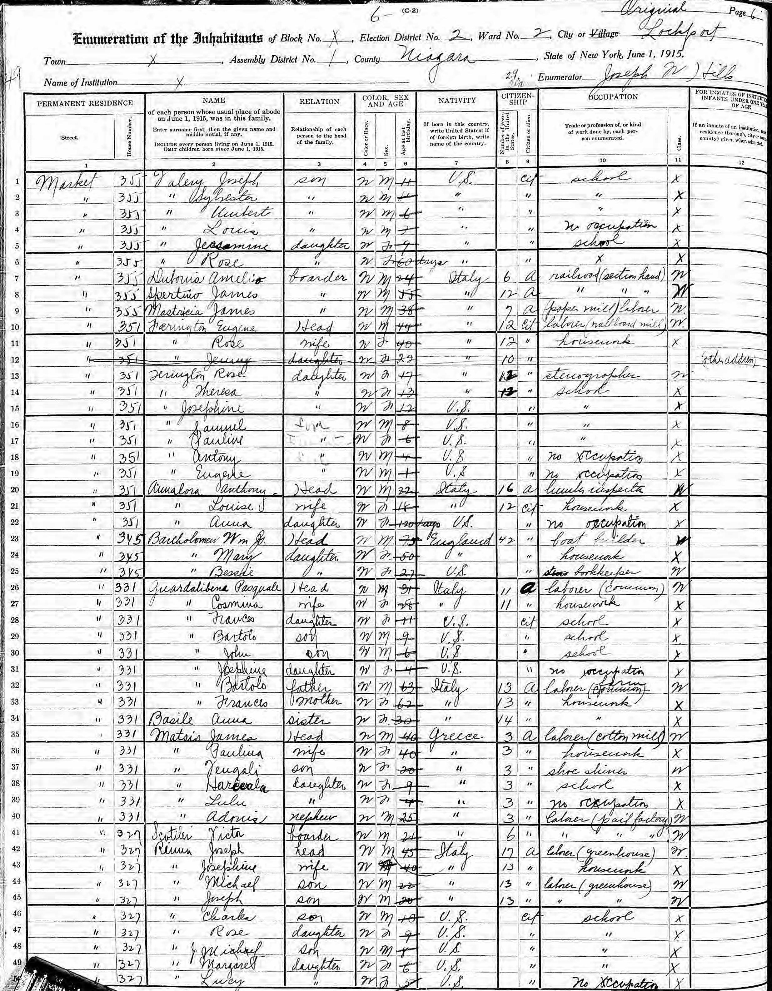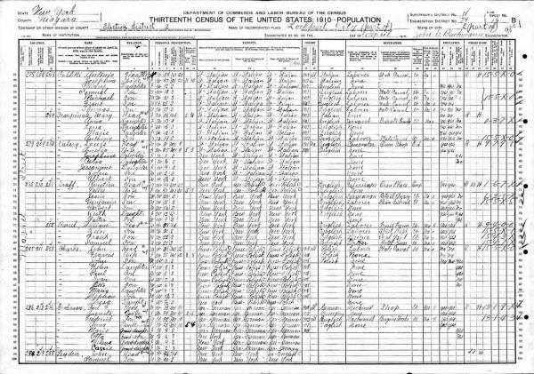 Valeri Family 1910 Federal Census New York, Lines 63-69