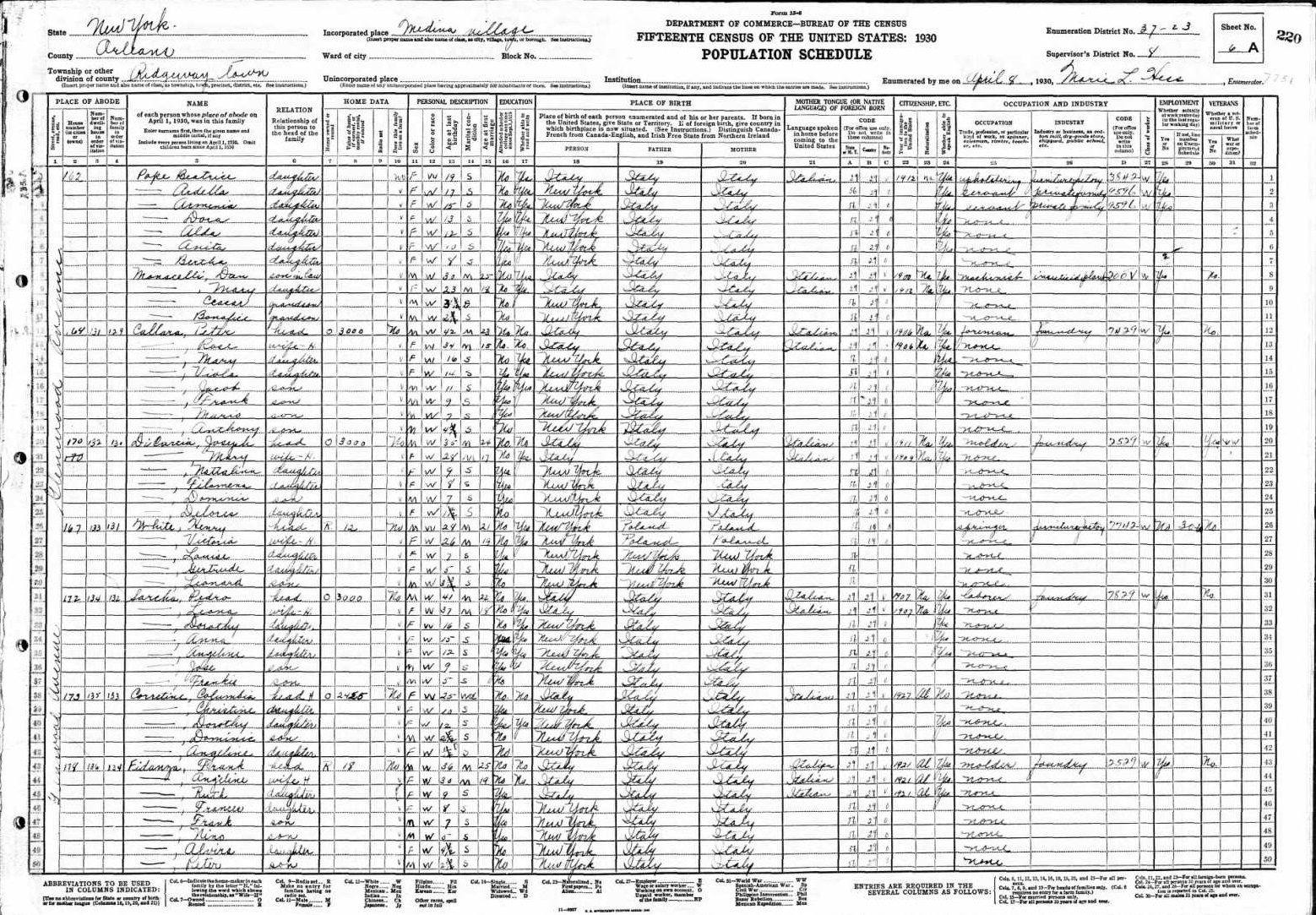 Scibelli Family 1930 Federal Census New York, Lines 67-77