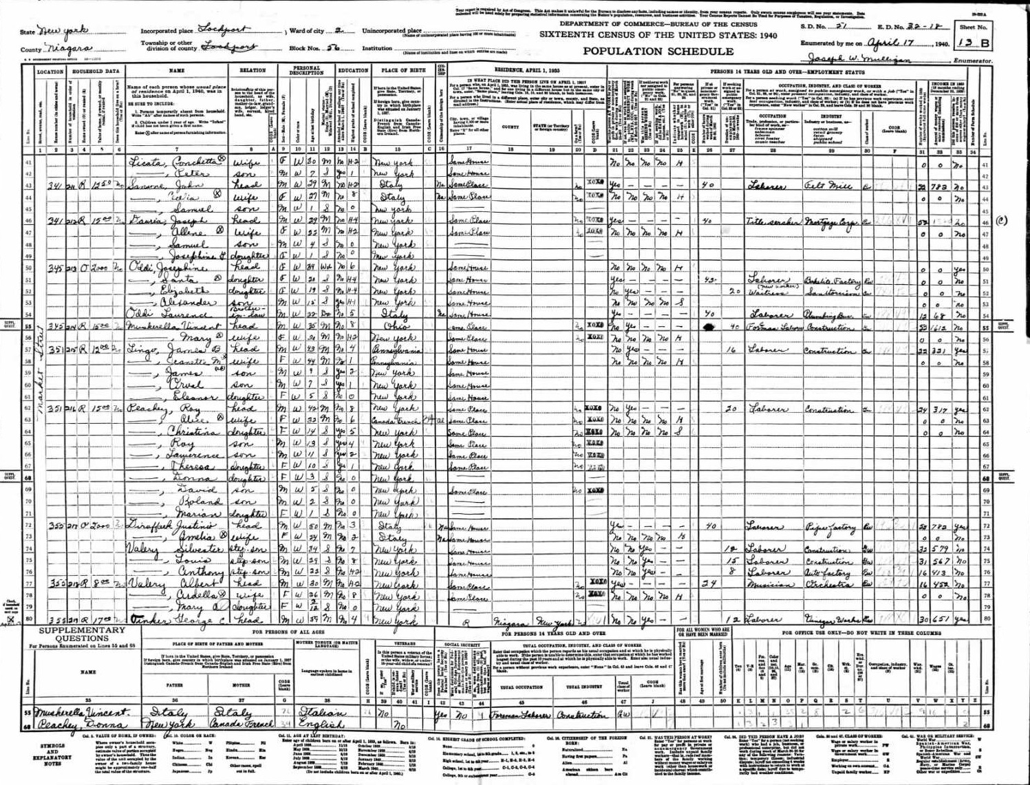 Valeri Family 1940 Federal Census New York, Lines 74-79