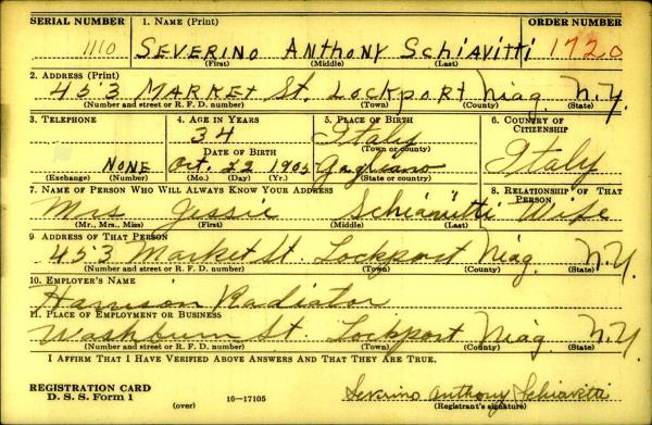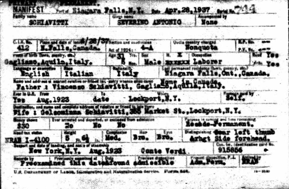 Severino Antonio Schiavitti was born on October 22, 1905 in Gagliano Aterno, L'Aquila, Abruzzo, Italy. He and