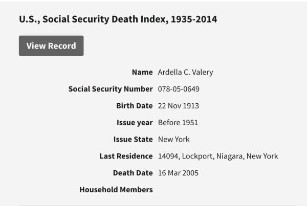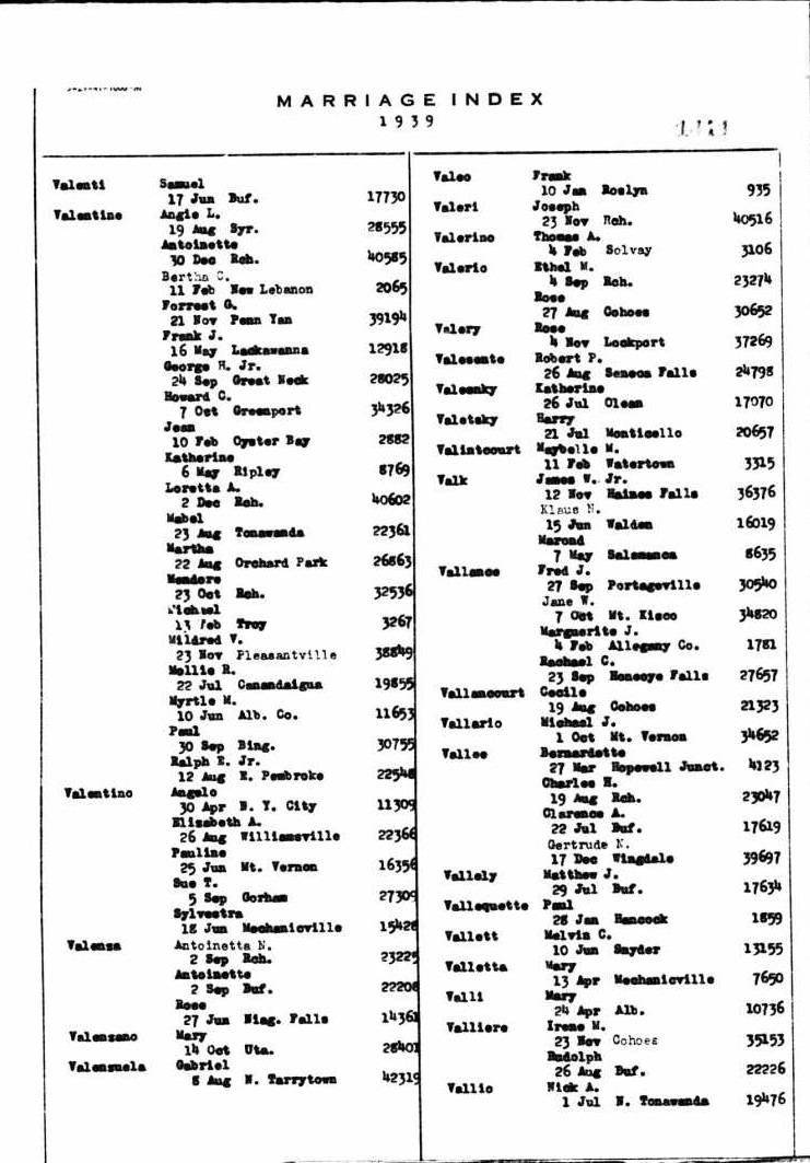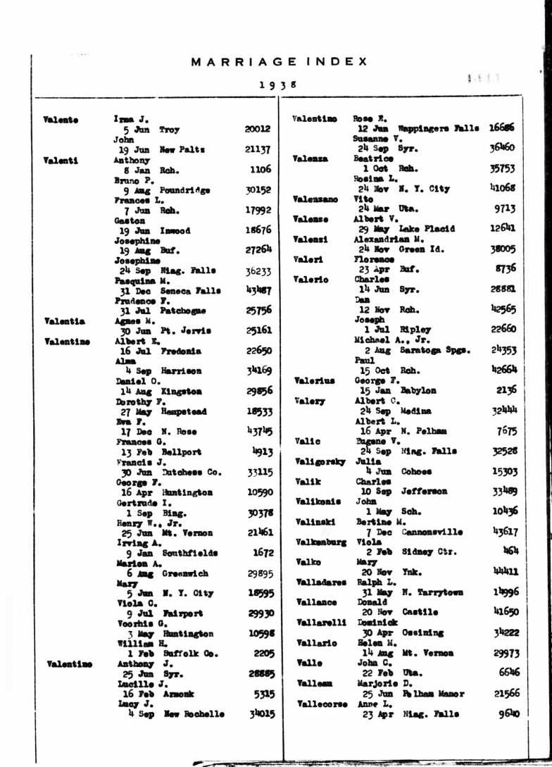 Albert Carl Valeri were married on September 24, 1938 in Medina, Orleans, New York, USA. She died on March 16, 2005, at age 91, in Lockport, Niagara, New York, USA. She was buried in Cold Springs Cemetery, Lockport, New York.