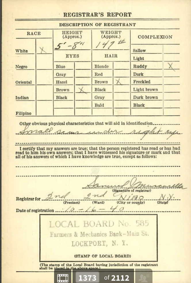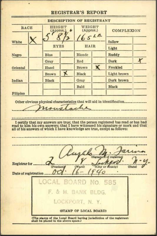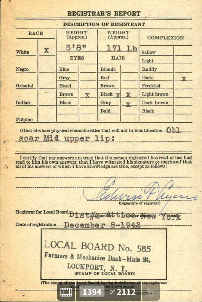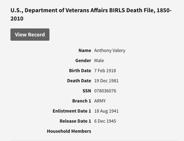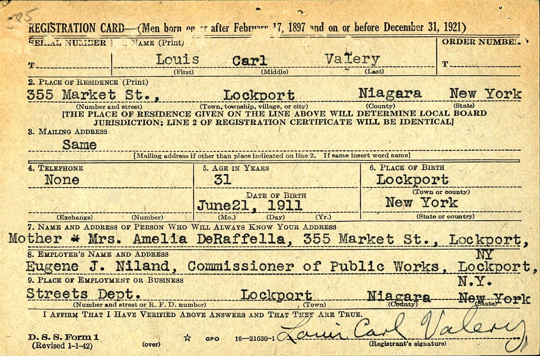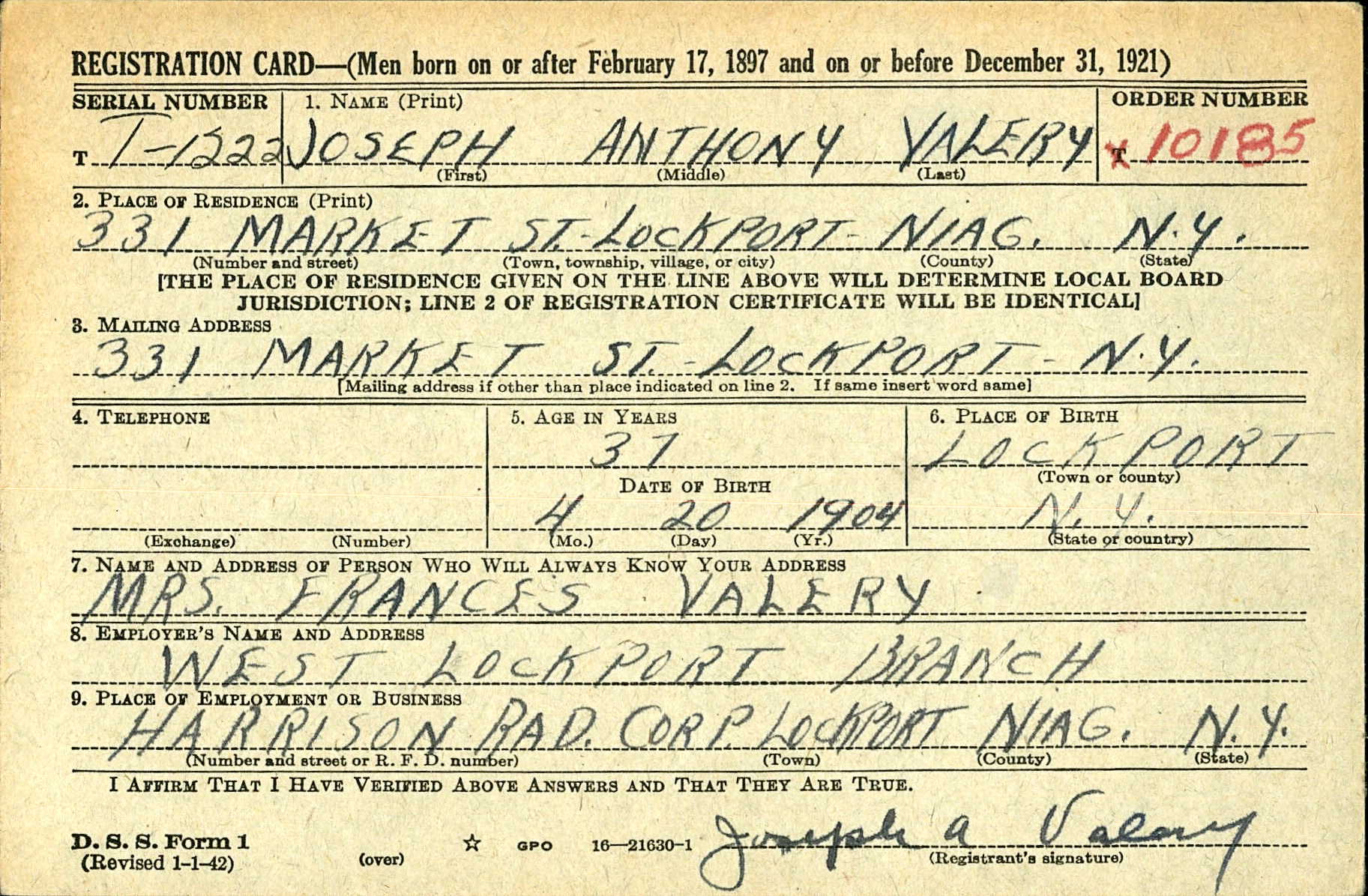 Anthony J. Valeri was born on February 7, 1918 in Lockport, Niagara, New York, USA. He and