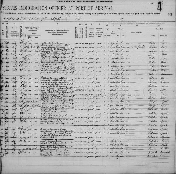 Scibelli Family 1914 Ship Departure Manifest, Lines 5-7
